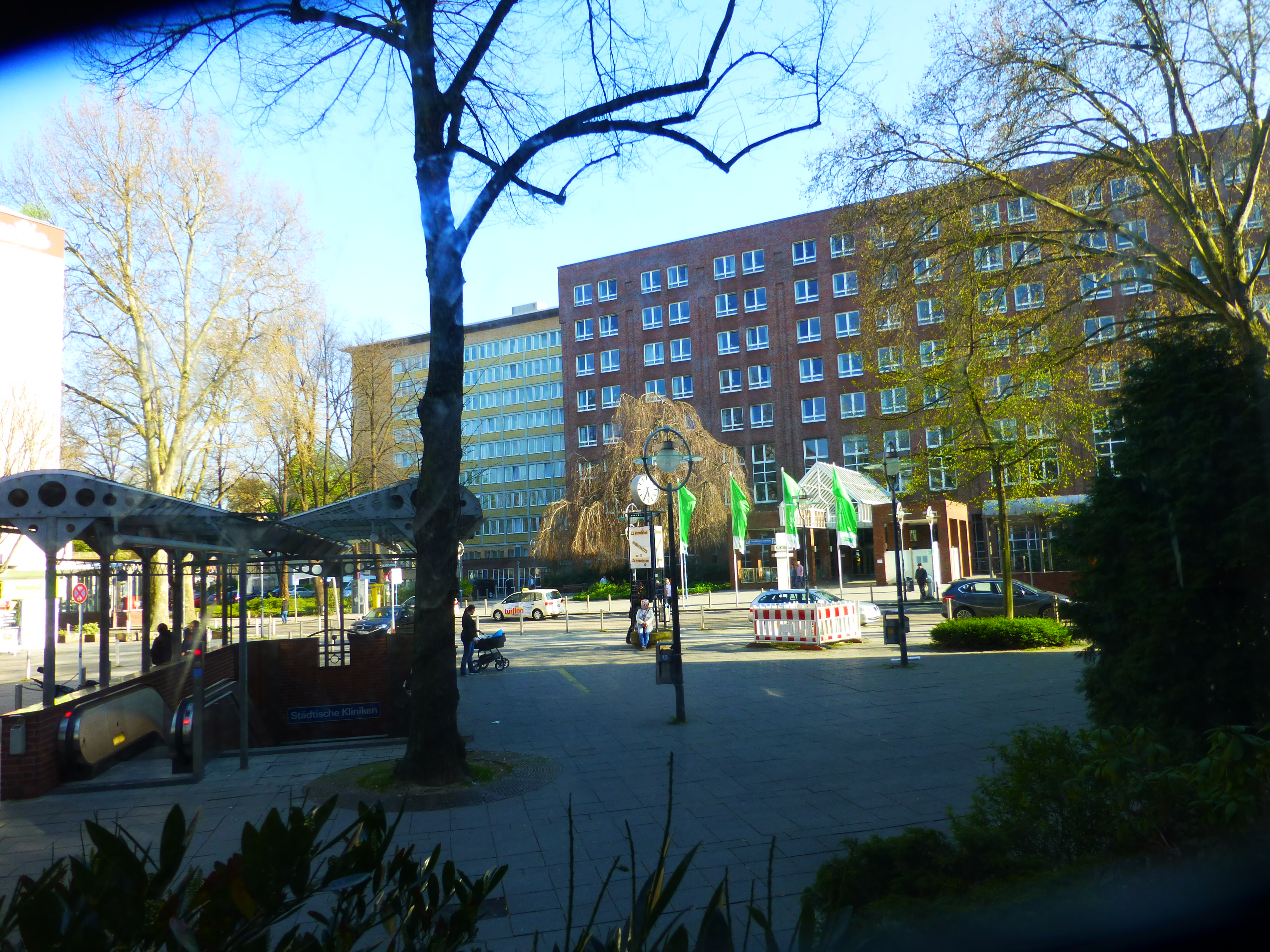 Betroffenes Gebiet: Blick von der Kinderklinik zur Zentrale des Klinikums. (Foto von April 2015: Bernd Berke)