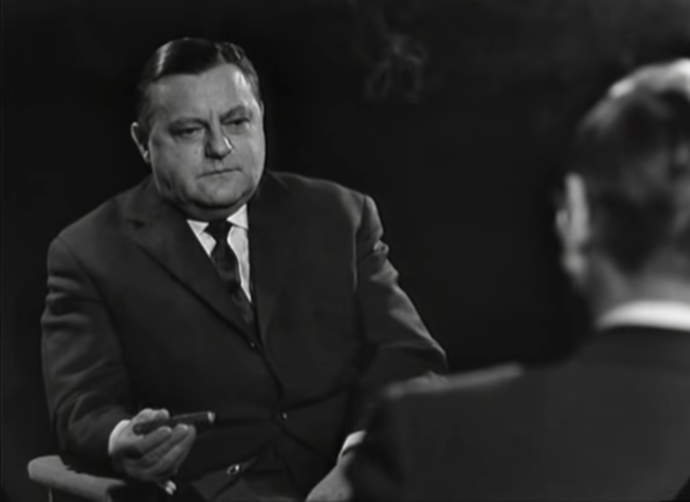Trat mit ZIgarre an: Franz Josef Strauß 1964 als Gast von Günter Gaus. (Screenshot aus:https://www.youtube.com/watch?v=OwGTvGIdEJQ)