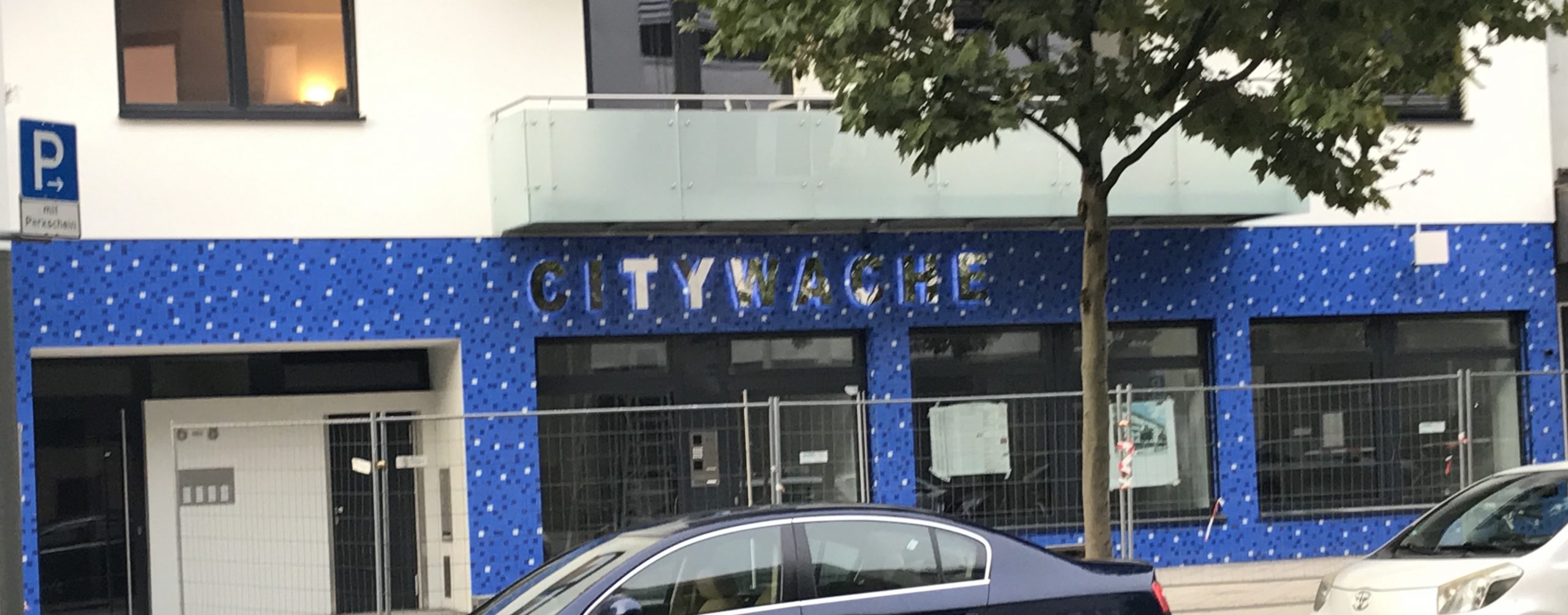 Ungewöhnliche Anmutung: die neue Polizeiwache, hier noch während der (Um)bauzeit. (Foto: Bernd Berke)