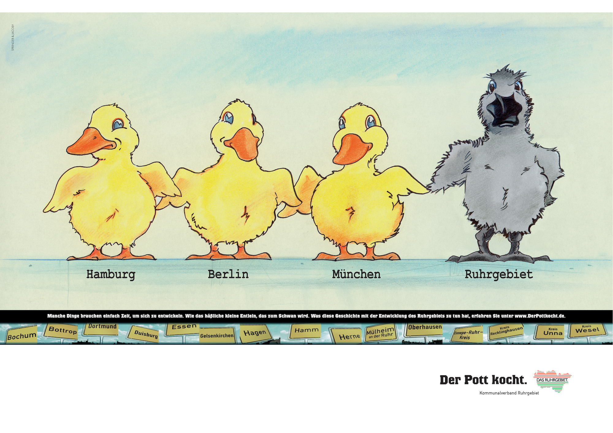 Auch ein Aspekt bei „100 Jahre Ruhrgebiet“: selbstironische Imagekampagne „Der Pott kocht“ (1999) mit einem hässlichen Entlein aus dem Revier. (© Leihgeber Regionalverband Ruhr RVR)