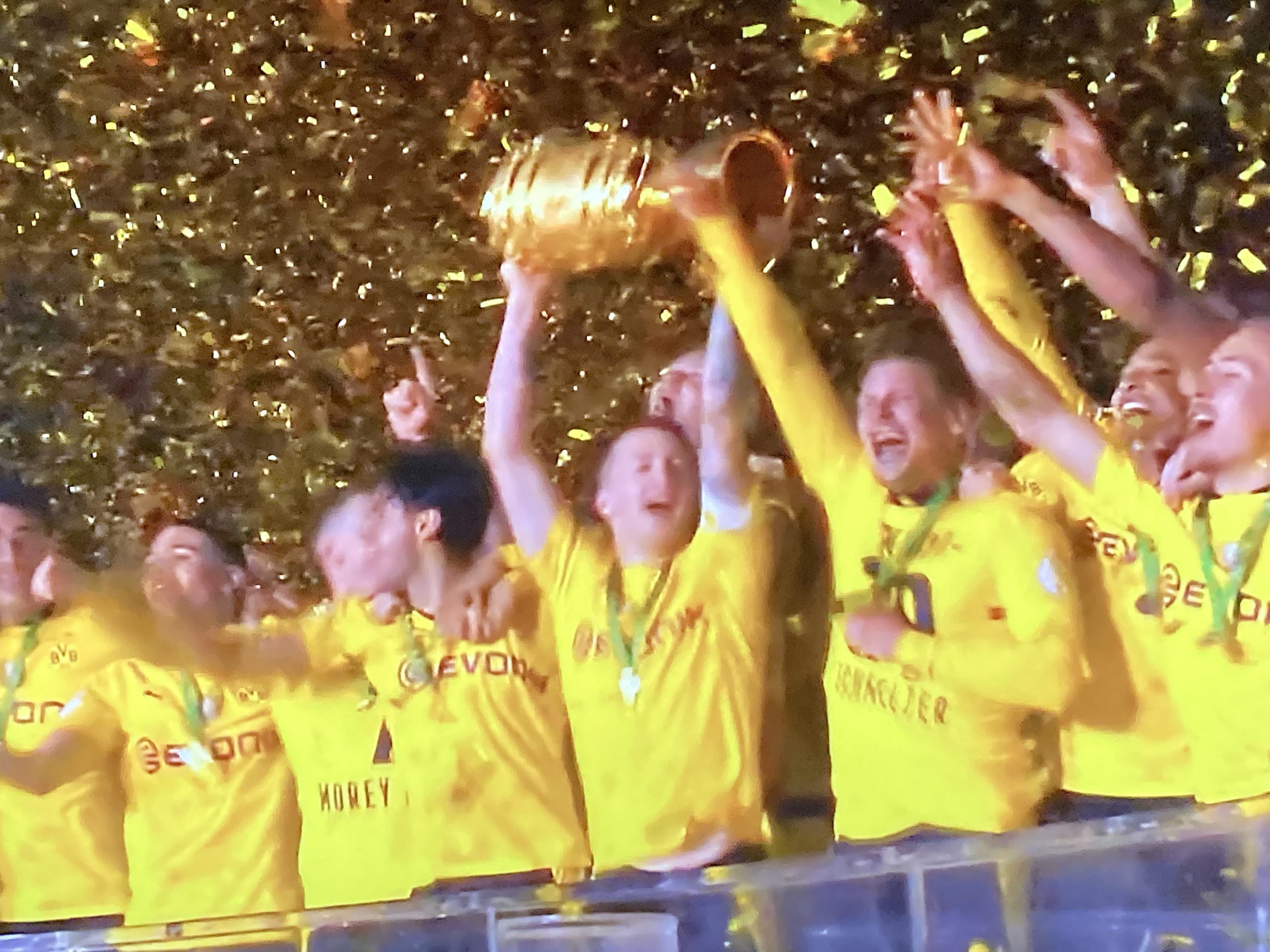 Dortmunder Jubel über den Pokalsieg (Screenshot der ARD-Übertragung)
