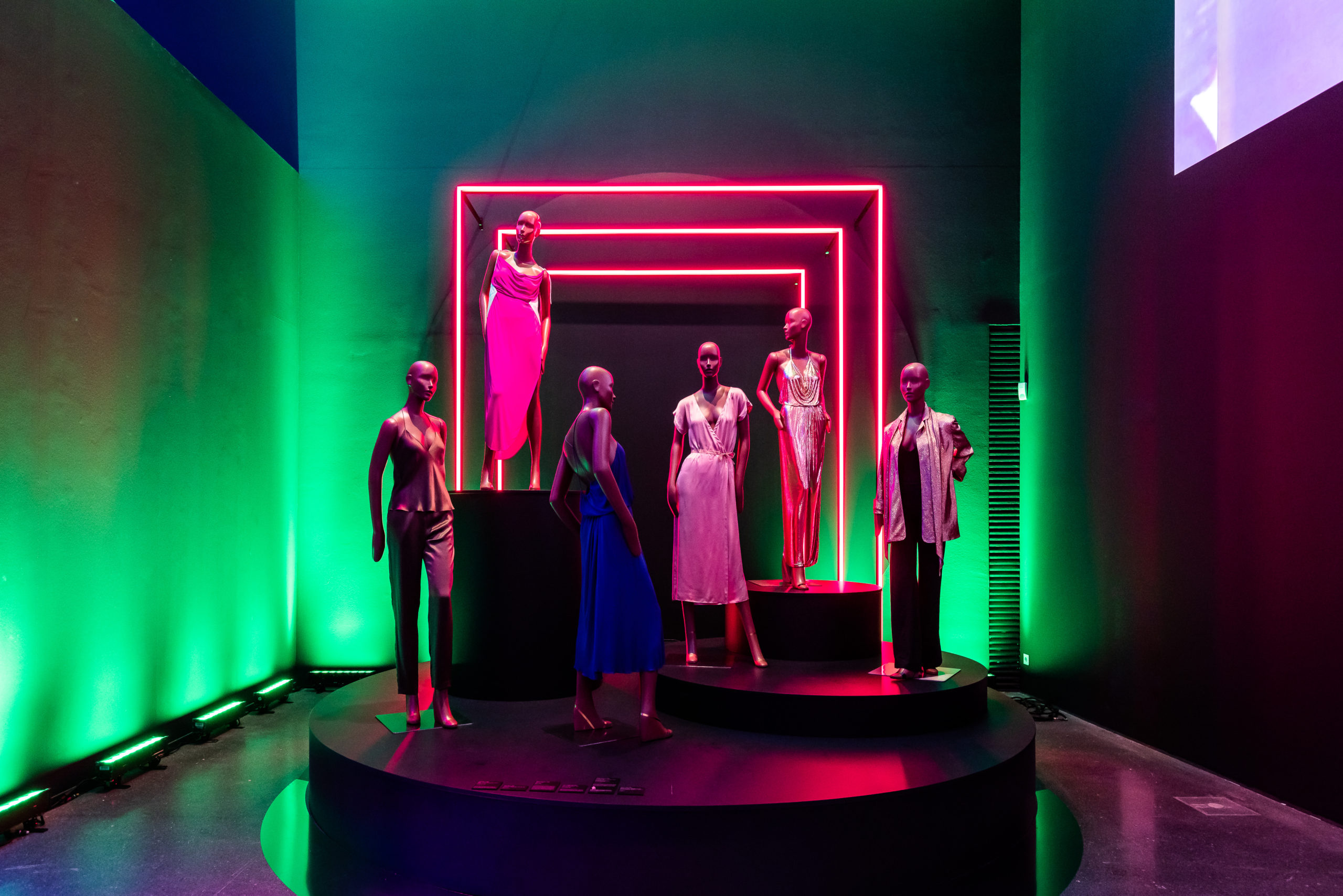 Ausstellungsansicht mit Mode-Beispielen: „Studio54: Night Magic“ (Foto: Roland Baege)