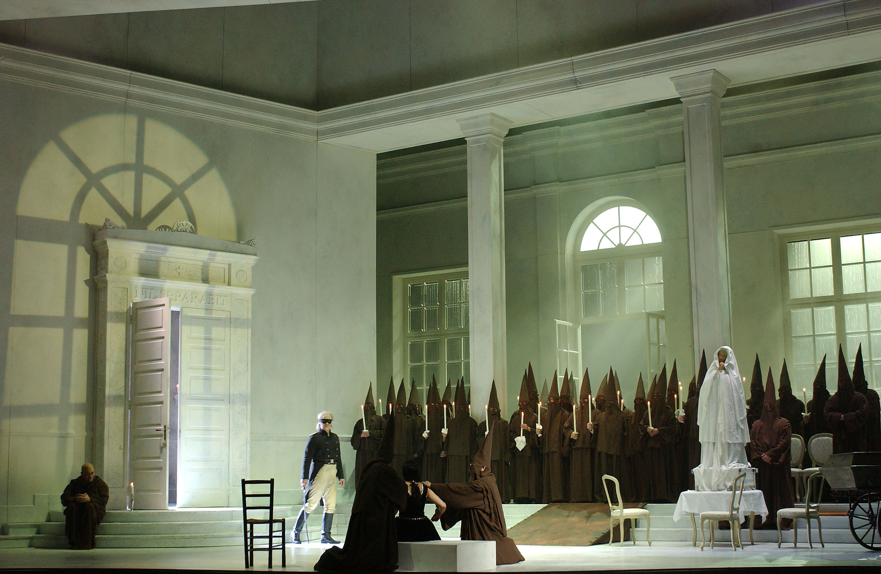 Szene aus Verdis "La Forza del Destino" am Essener Aalto-Theater; Bühne Johannes Leiacker. Foto: Thilo Beu