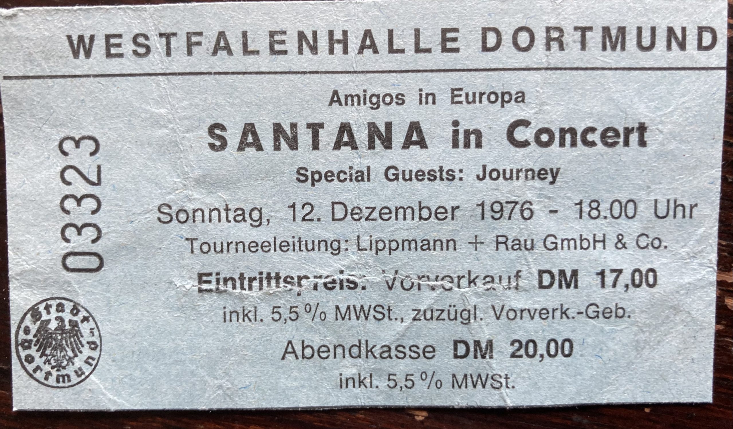 Zum Beispiel…Santana. Man beachte die günstig erscheinenden Eintrittspreise. Doch damals war das nicht wenig Geld.