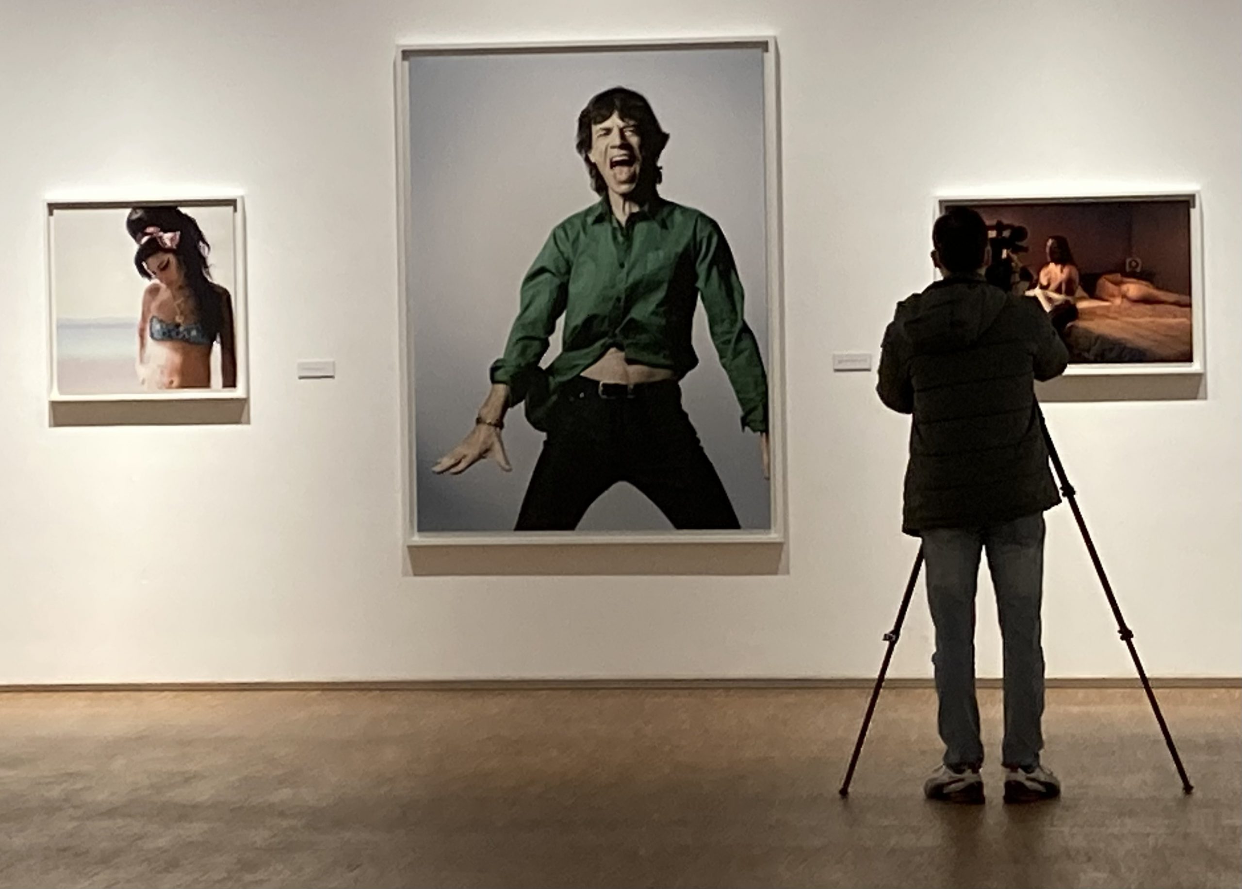 Blick in die Hagener Ausstellung – hier mit Bryan Adams‘ Porträts von Mick Jagger und Amy Winehouse. (© Bryan Adams / Ausstellungs-Foto: Bernd Berke)