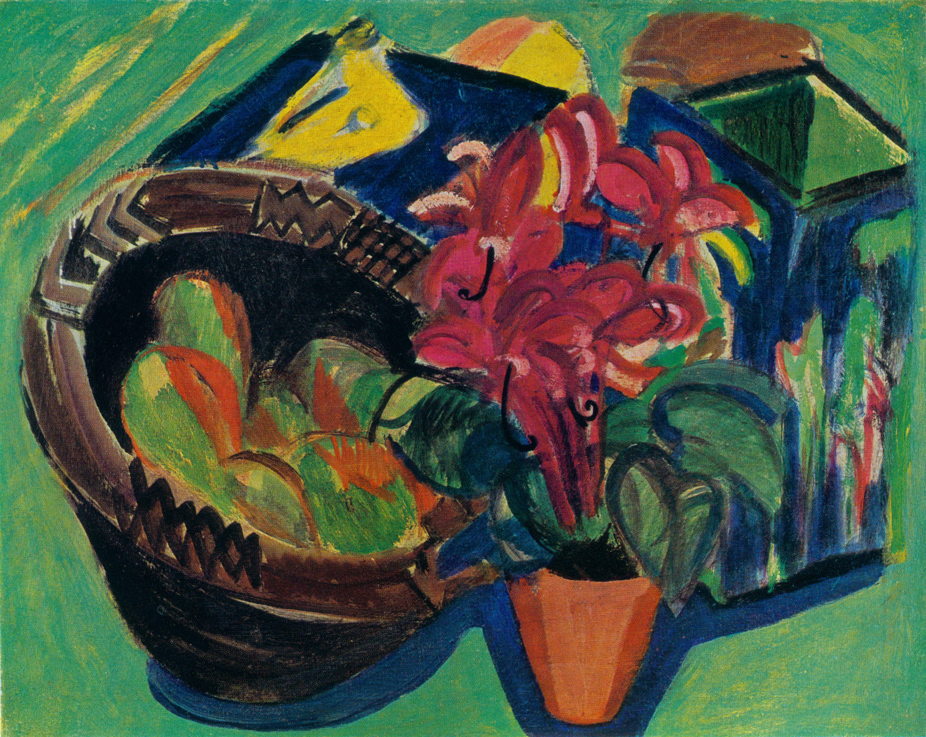 Ernst Ludwig Kirchner: „Stillleben mit Früchtekorb“, 1918/19, Öl auf Leinwand, 64 x 80,5 cm (Courtesy Galerie Henze & Ketterer & Triebold, Riehen/Basel – Foto: Courtesy Galerie Henze & Ketterer & TRiebold, Riehen/Basel)