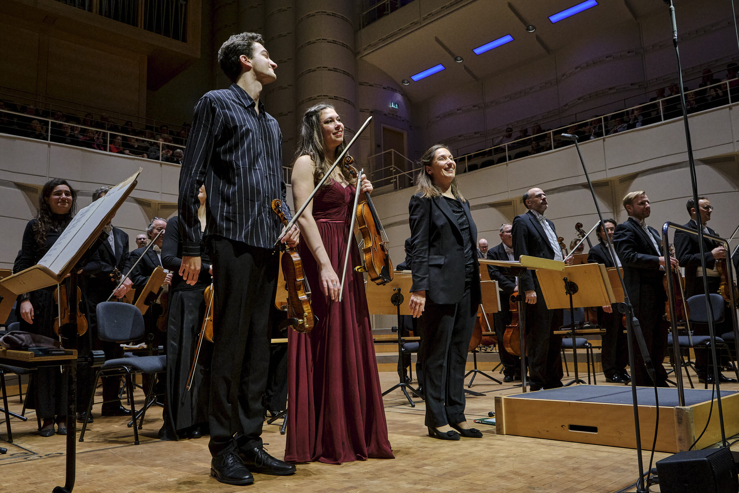 Stephen Waarts, Emma Wernig und die Dirigentin Ariane Matiakh (v.l., Foto: Stephan Lucka)