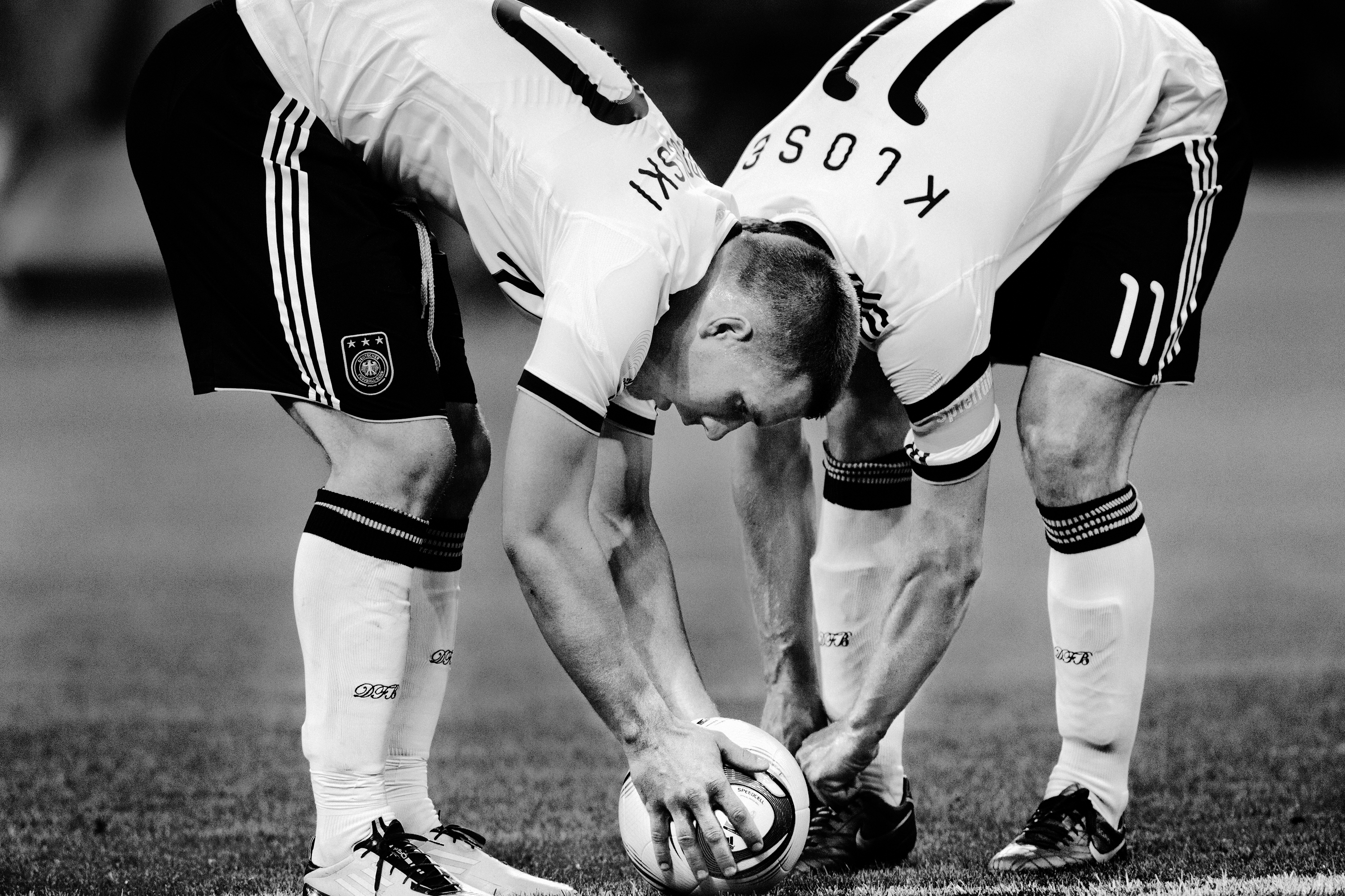 Vier Beine und ein Kopf oder: Klose und Podolski. Foto: Regina Schmeken