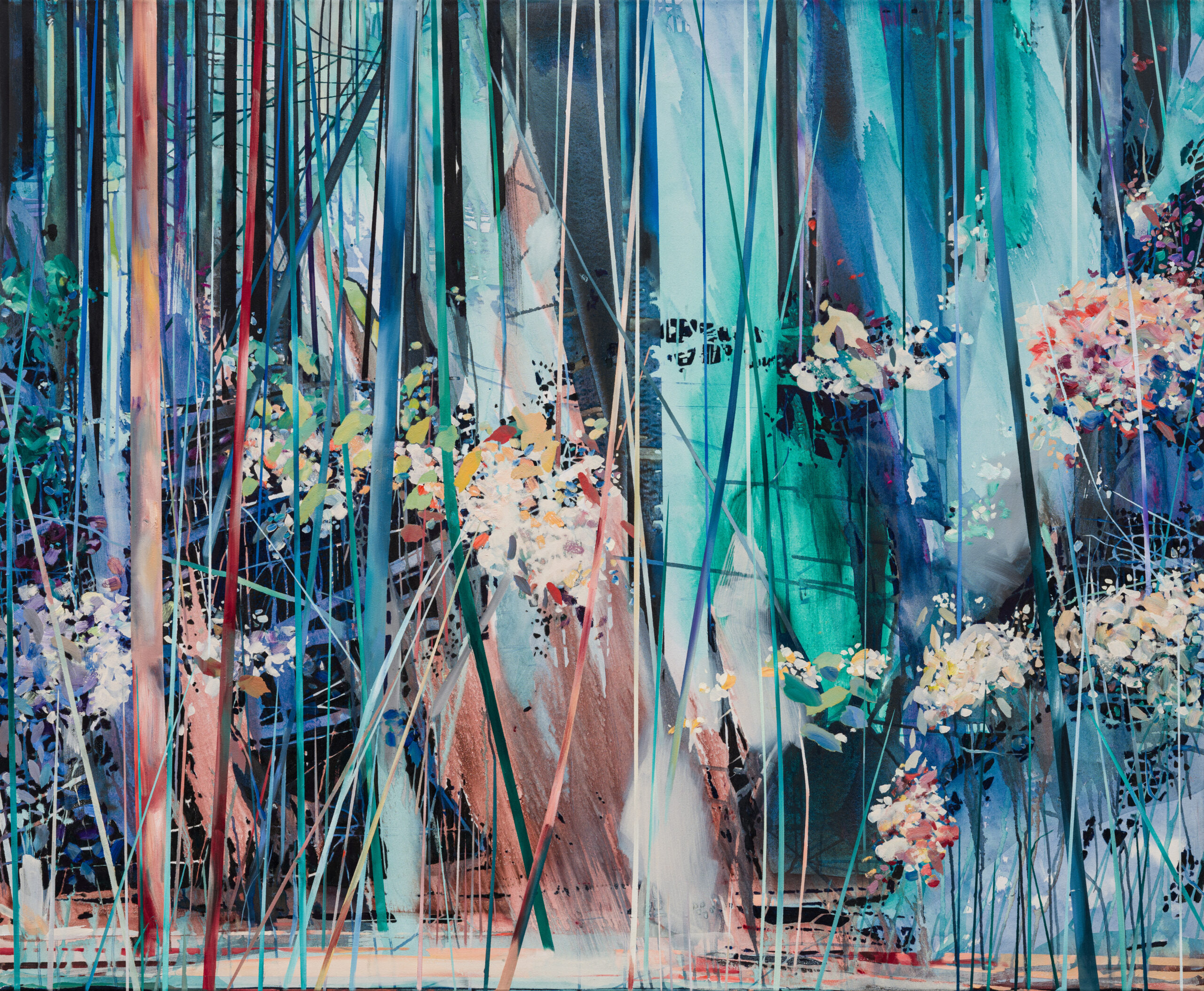 Theresa Möller: „Entanglements“ (2023), Acryl auf Leinwand, 140 × 170 cm, (© Courtesy: She BAM! Galerie Laetitia Gorsy, Leipzig und VG Bild-Kunst, Bonn 2024)
