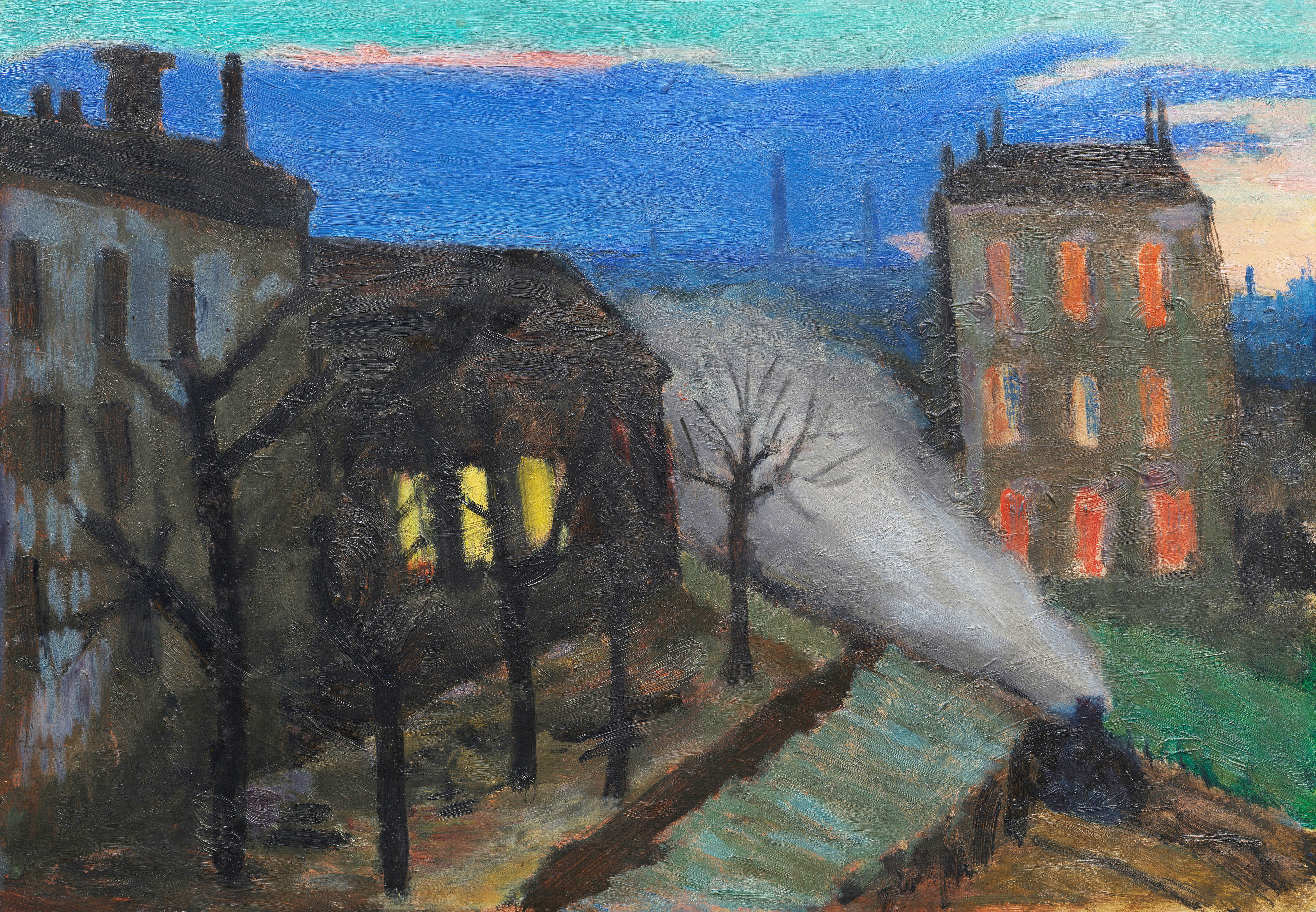 Um dieses Bild geht es: Gabriele Münter „Abend vom Fenster (Blick auf Rue Lamblardie, Paris“ (1930) (© VG Bild-Kunst, Bonn 2025