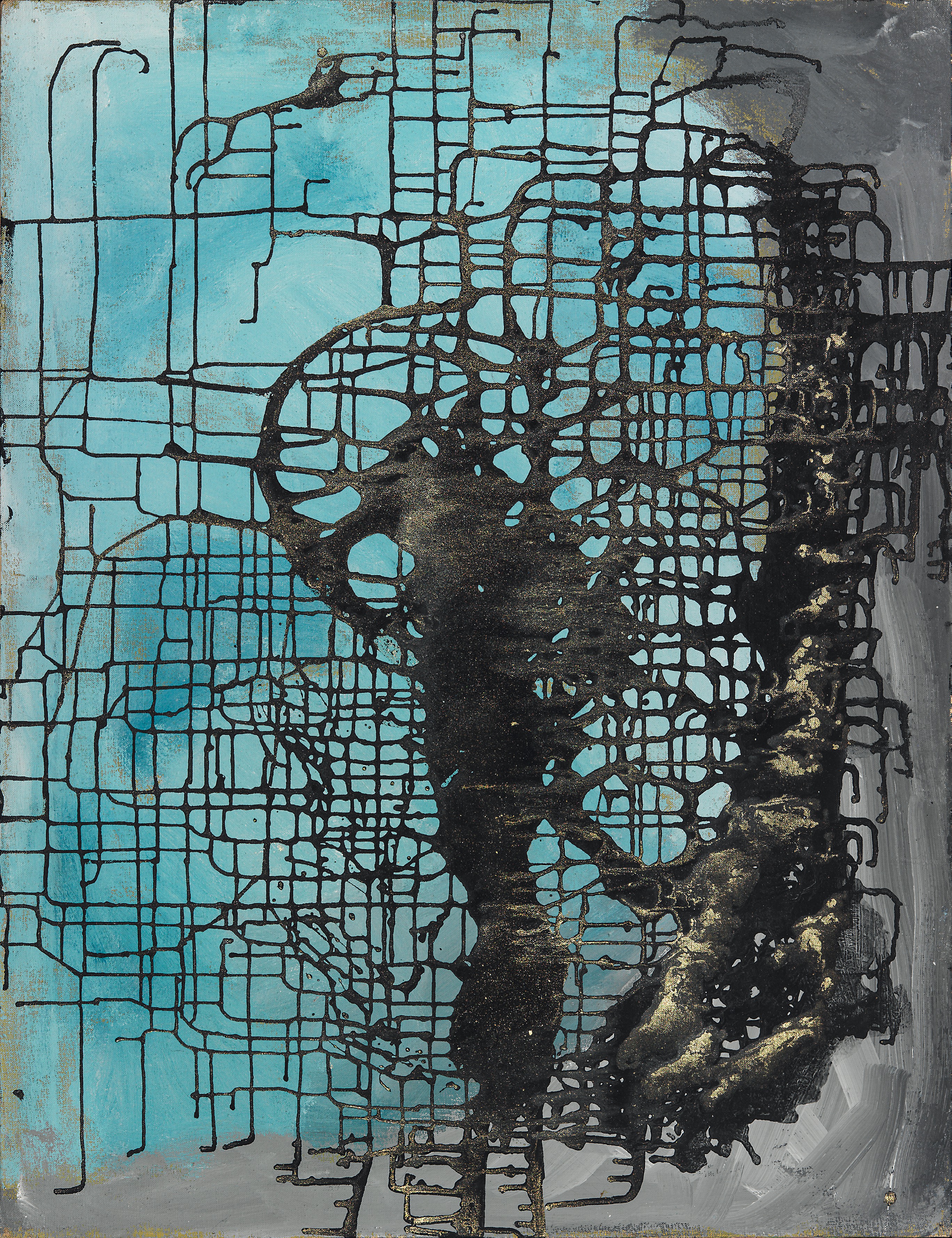 Helen Dahm: Raumgitter auf Blau, 1958, Mischtechnik auf Leinwand (Hessen Kassel Heritage, Neue Galerie. Foto: Thomas Gerber, Burgdorf © Helen Dahm Gesellschaft, Oetwil am See)