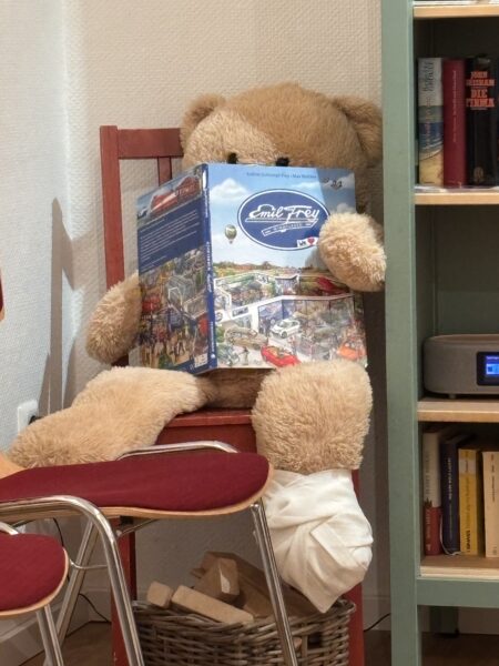 …und noch’n Bär: kindgerechte Bücherecke in einer Dortmunder Hausärztinnen-Praxis. (Foto: Bernd Berke)