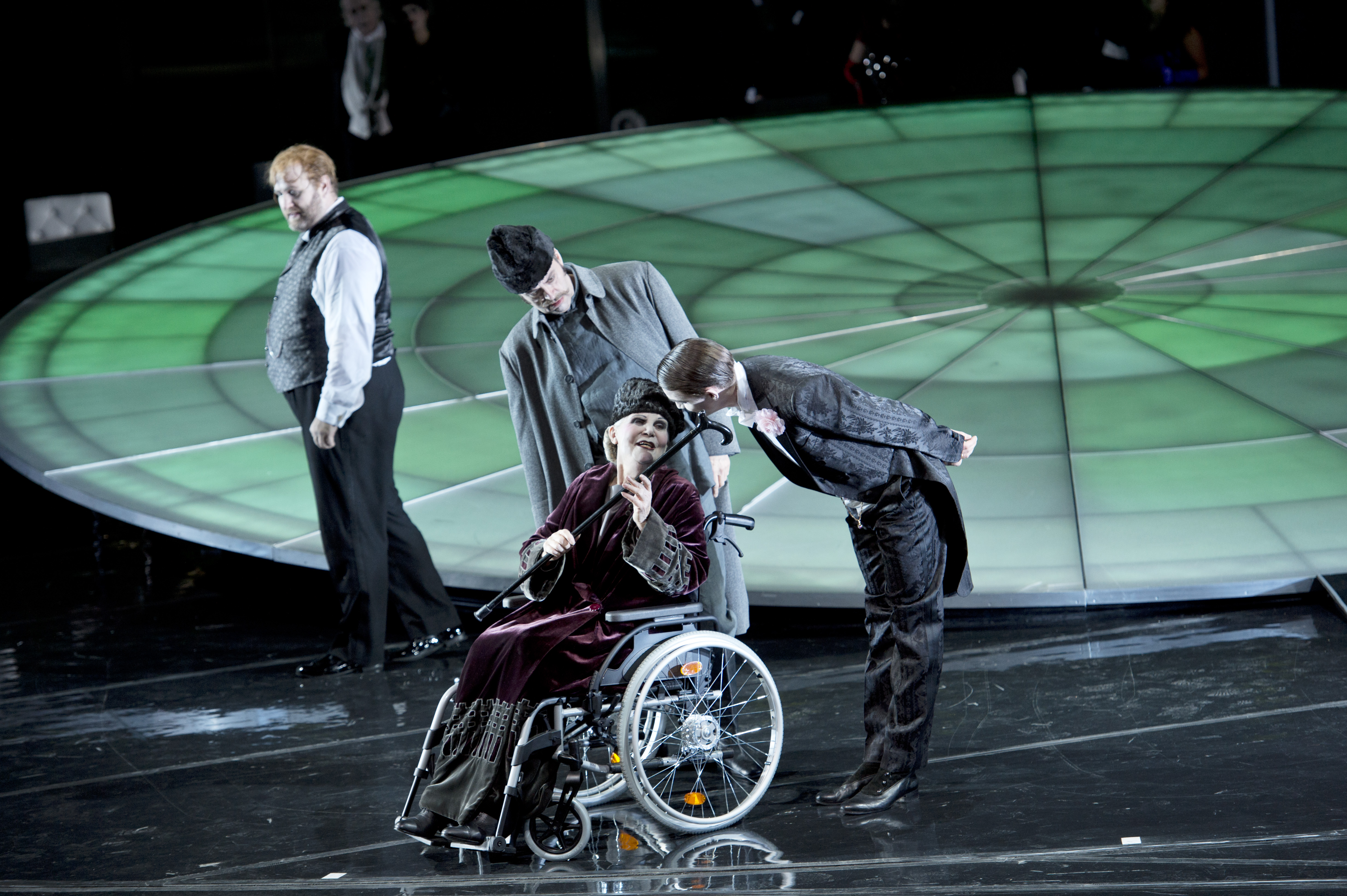 Die alte Babuschka: Anja Silja im Rollstuhl mit der Aura der großen Bühnendarstellerin. Foto: Monika Rittershaus