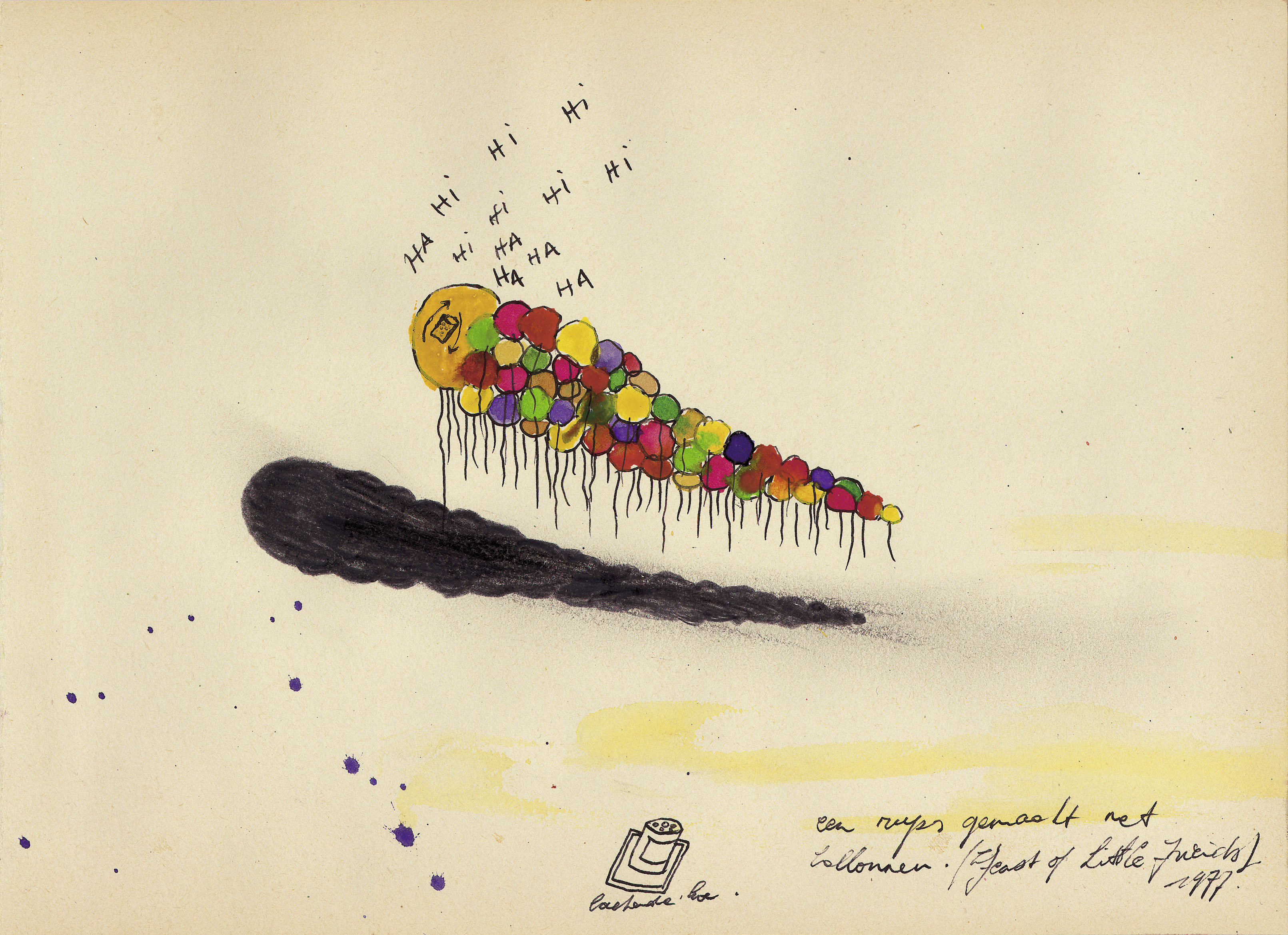 Lachlust in der Insektenwelt: Jan Fabre „Feast of little friends“ (1977), Tinte/Wasserfarbe auf Papier (Courtesy Flemish Community, Museum of Contemporary Art, Antwerpen)