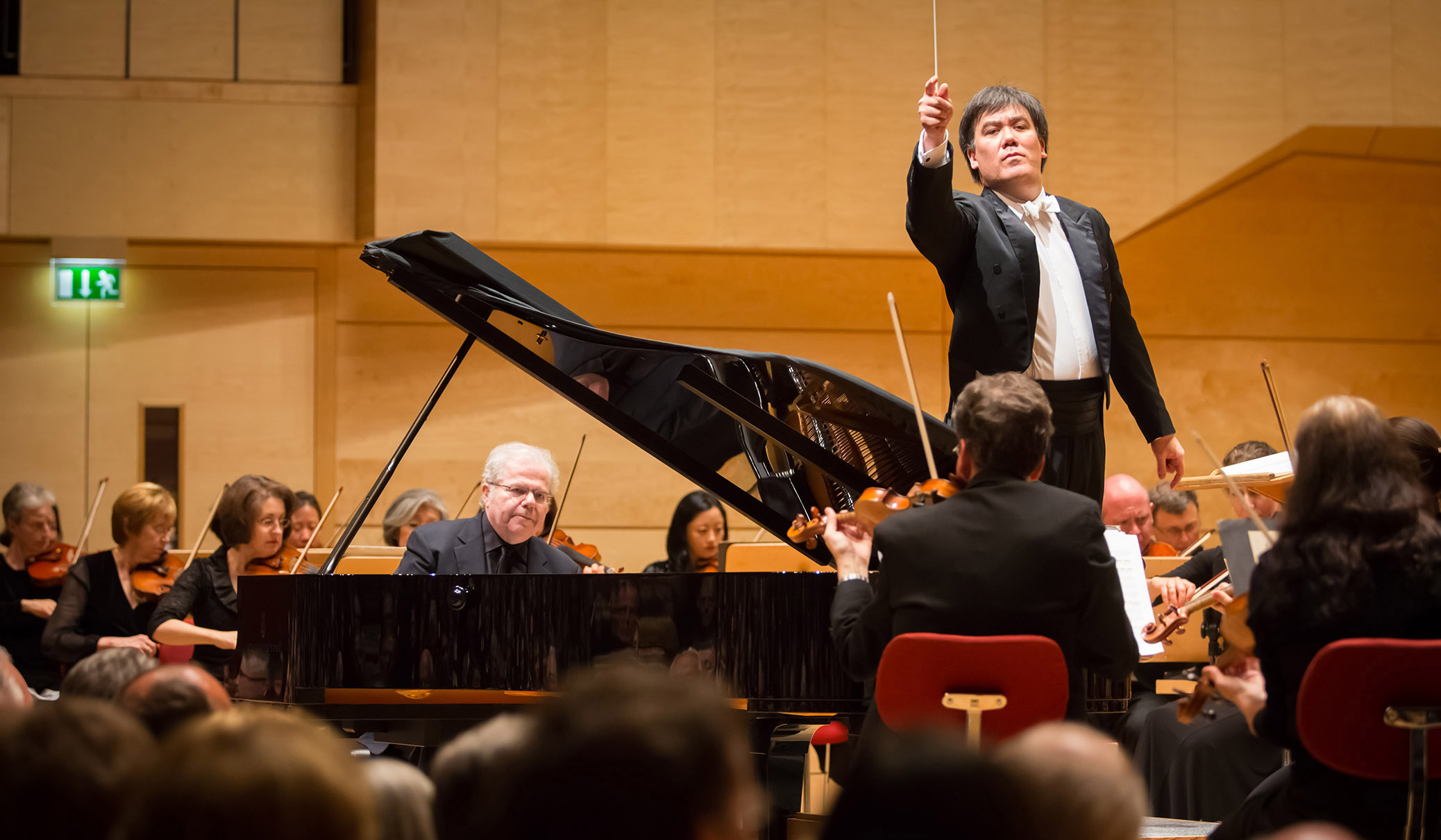 Alan Gilbert conducts the New York Philharmonic in Mozart Piano No. 25 with Emauel Ax as soloist at Philharmonie Essen, 5/8/13. Photo by Chris Lee