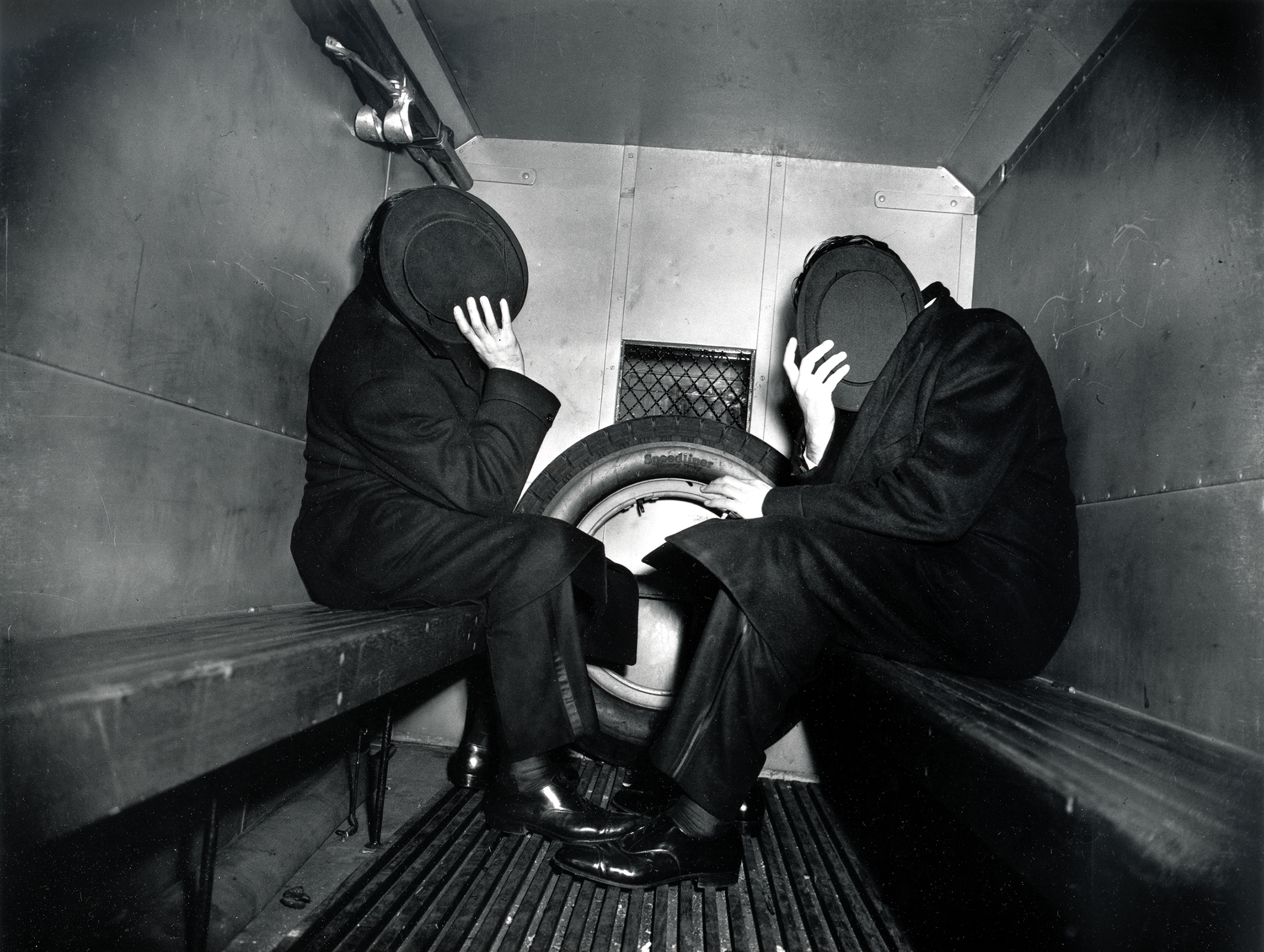 Delinquenten verbergen ihre Gesichter: Charles Sodokoff und Arthur Webber, 1942 (© Weegee/Institut für Kulturaustausch, Tübingen 2013)