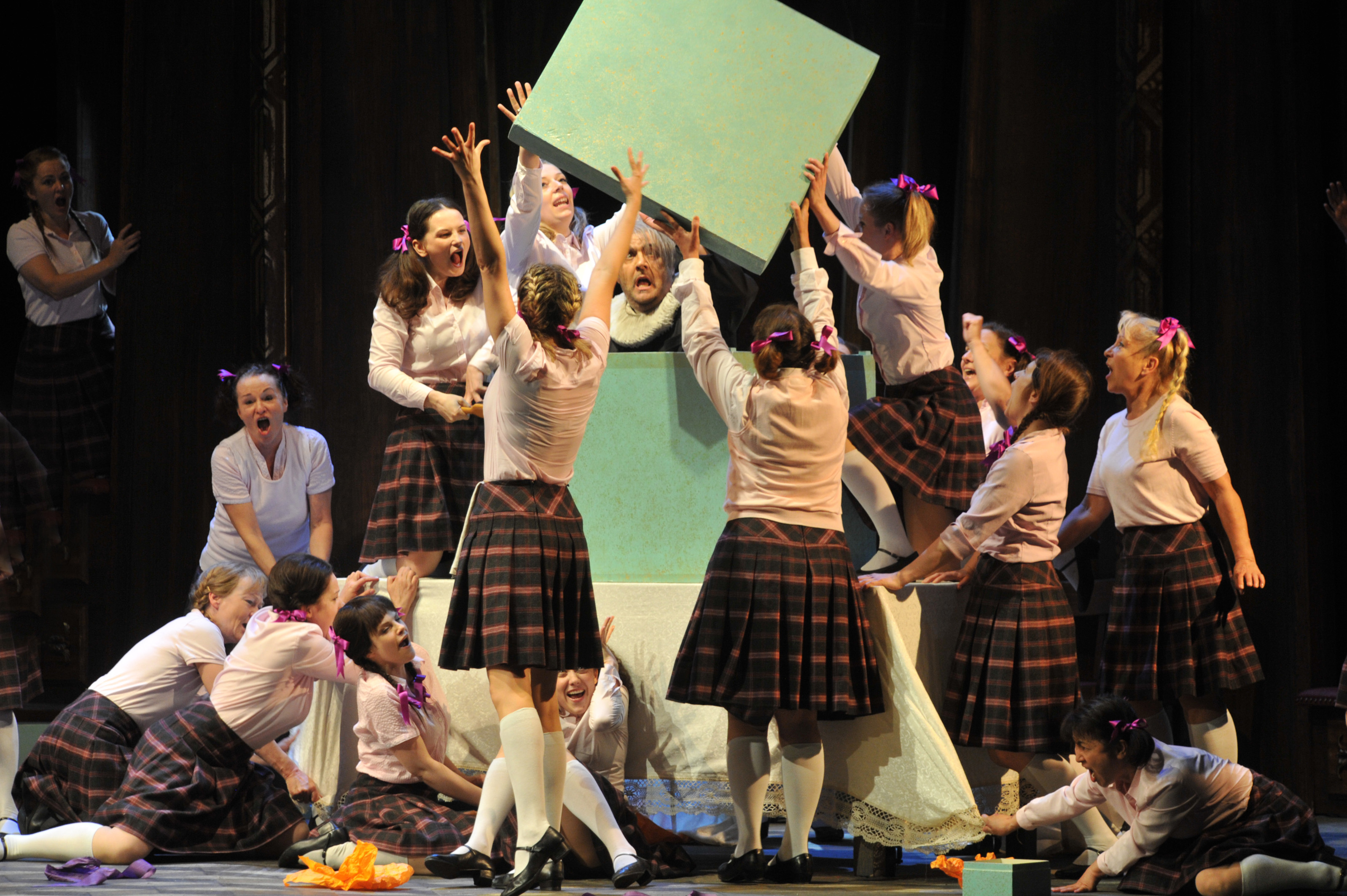 Neugier und Furcht: Der Zwerg (Raymond Very) wird ausgepackt. Foto: Hans-Joerg Michel