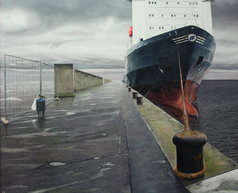 Hermann Buß: „Stiller Hafen“ (2011), Öl auf Leinwand. (Bild: Katalog)