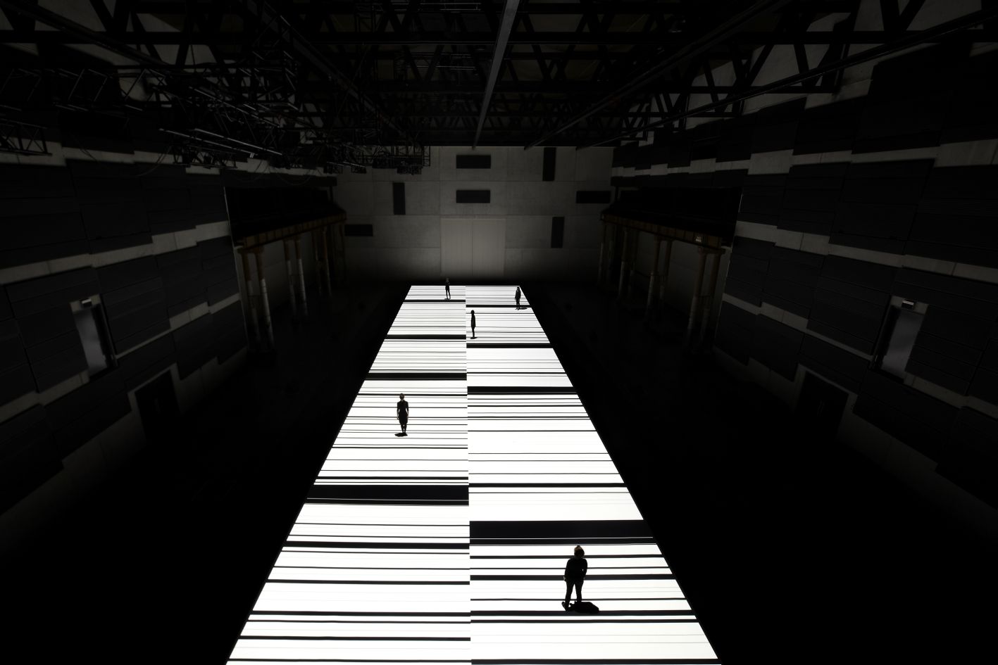 Eine audiovisuelle Installation ist der 100 Meter lange Barcode, die der Japaner Ryoji Ikeda in der Kraftzentrale des Landschaftsparks-Nord in Duisburg projiziert (Foto: Zan Wemberley)