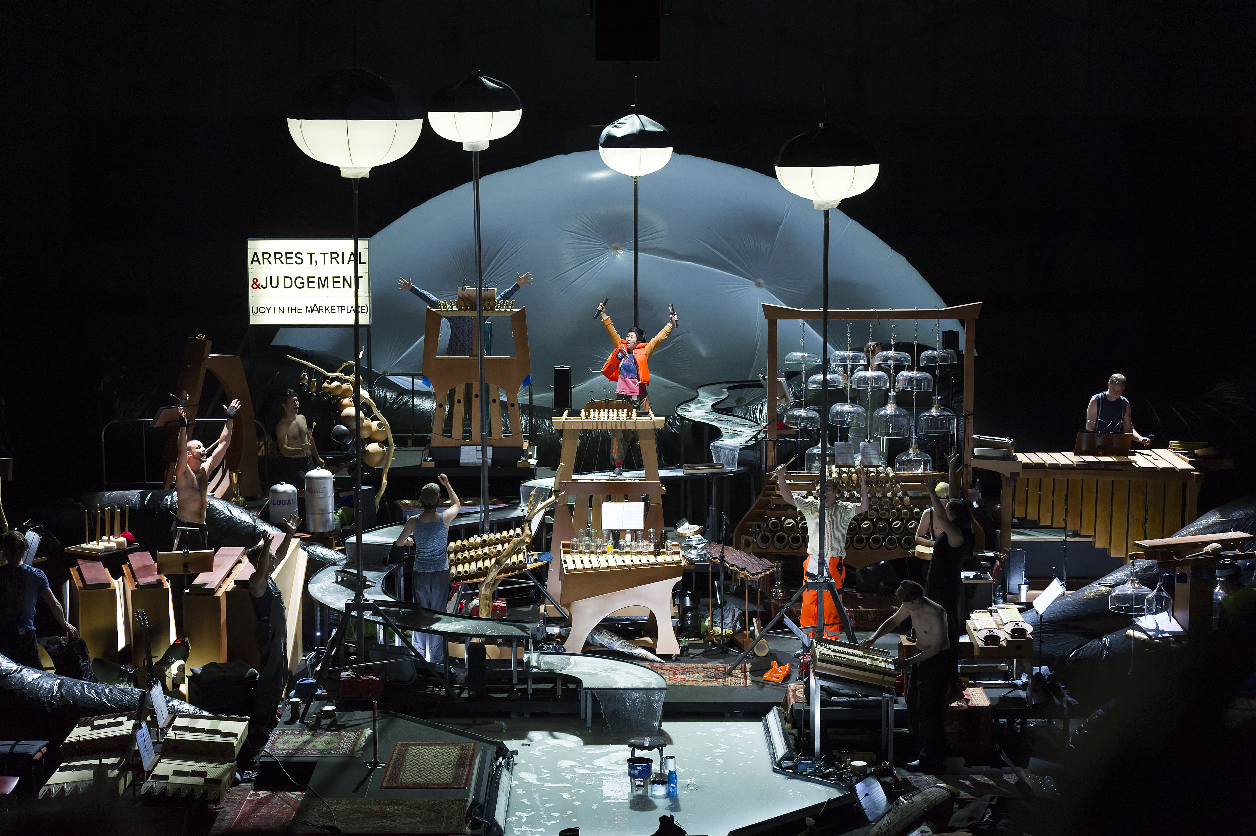 Aufführung der Komposition “ Delusion of the fury “ von Harry Partch in der Musiktheater Inszenierung von Heiner Goebbels mit dem Ensemble musikFabrik in der Jahrhunderthalle Bochum im Rahmen der Ruhrtriennale 2012-14 am Mittwoch, 21.08.2013
