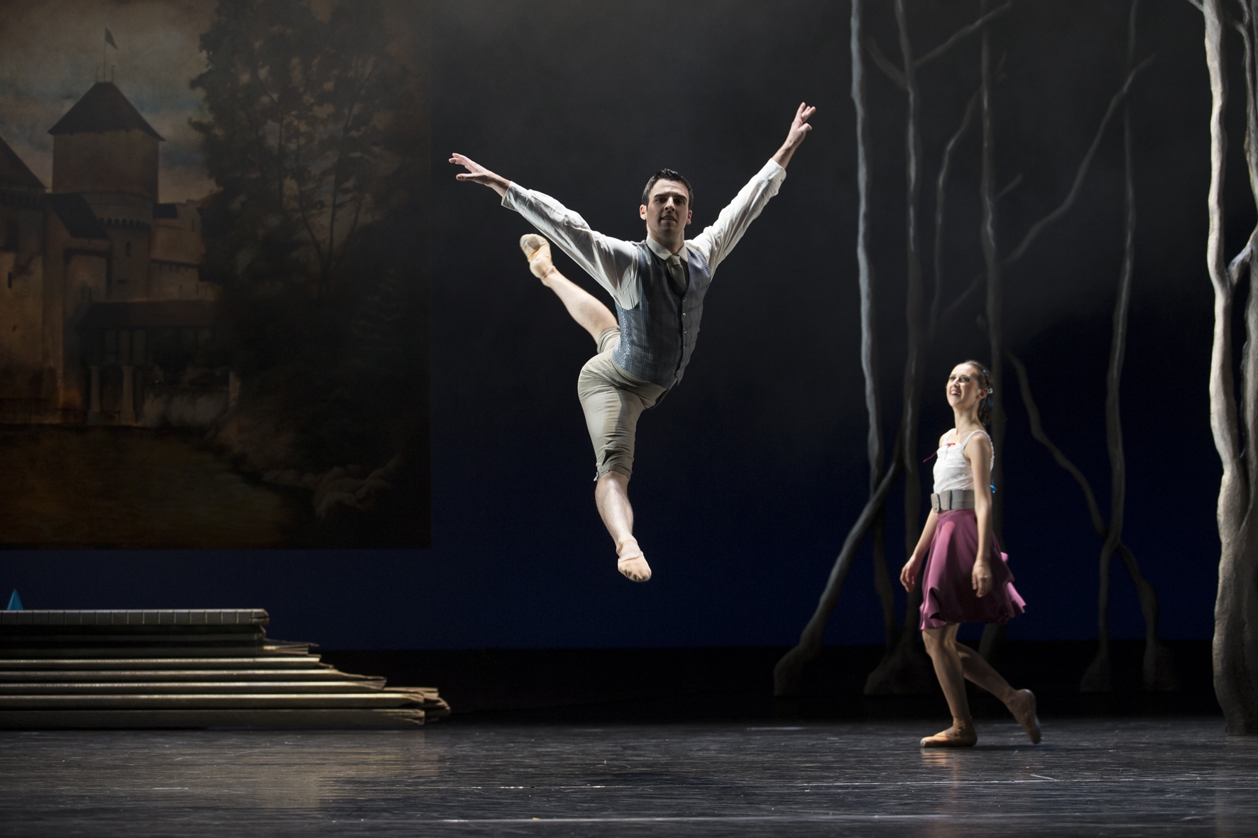 Der Freund des Prinzen (Valentin Juteau) und eine Hofdame (Francesca Berruto. Foto: Sebastien Gallier/MiR)