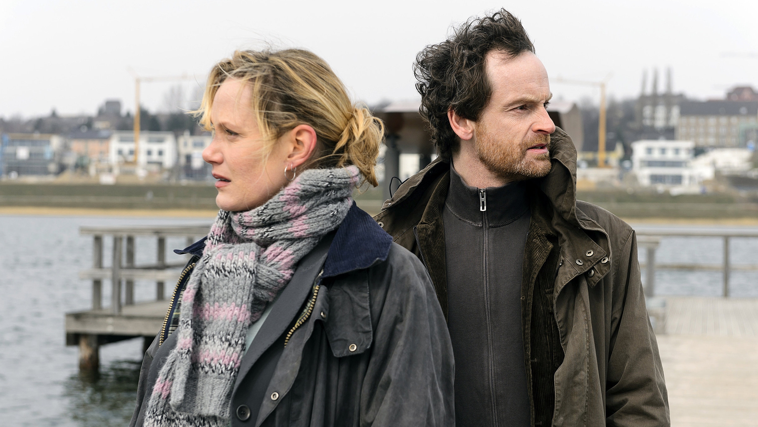 Kommissar Faber (Jörg Hartmann) mit Kollgin Bönisch (Anna Schudt) am Dortmunder Phoenixsee. (© WDR/Thomas Kost)