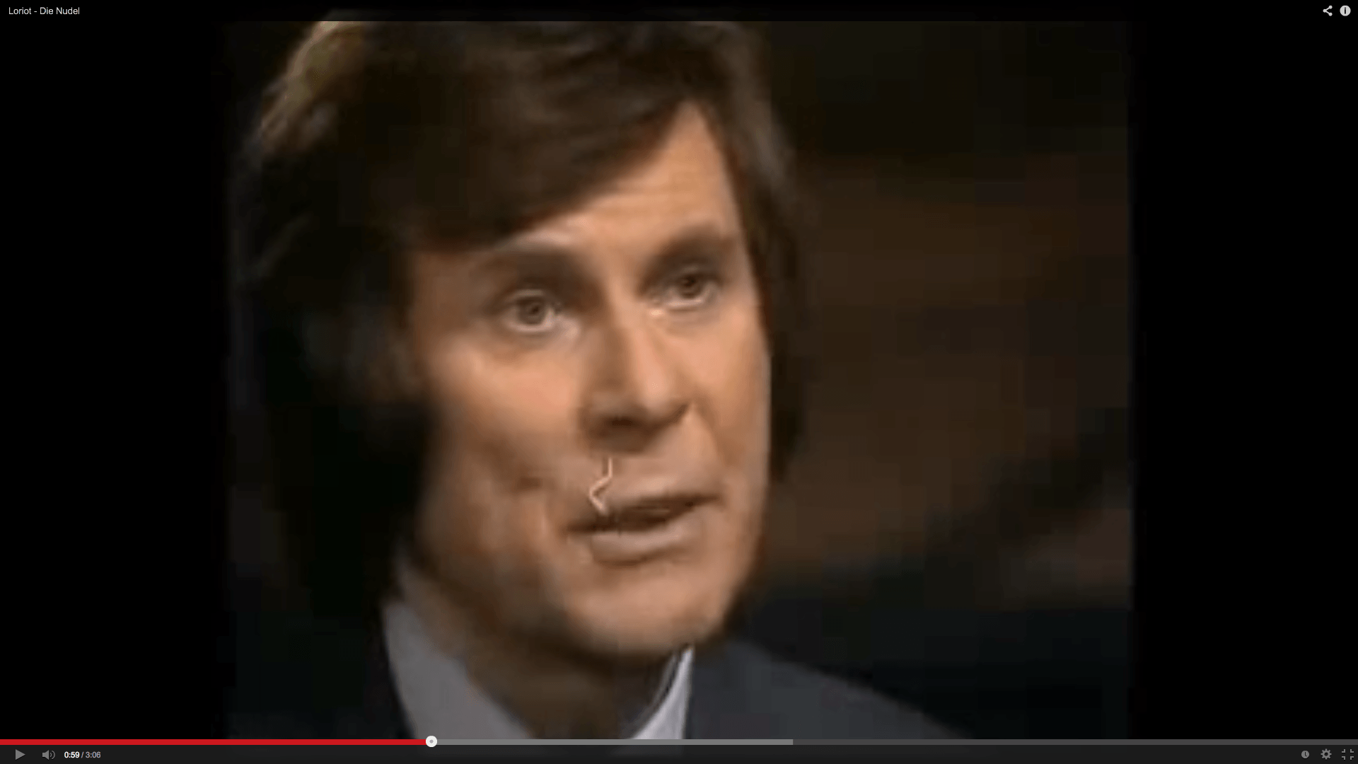 Berühmte Szene mit Loriot: Liebeserklärung mit Nudel im Gesicht… (Screenshot aus http://www.youtube.com/watch?v=zArEBFsviHs)