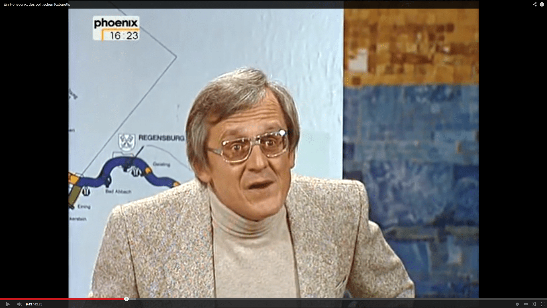Dieter Hildebrandt im Januar 1982 in der legendären „Scheibenwischer“-Ausgabe über den Rhein-Main-Donau-Kanal (Screenshot aus http://www.youtube.com/watch?v=MosvwkOelcs)