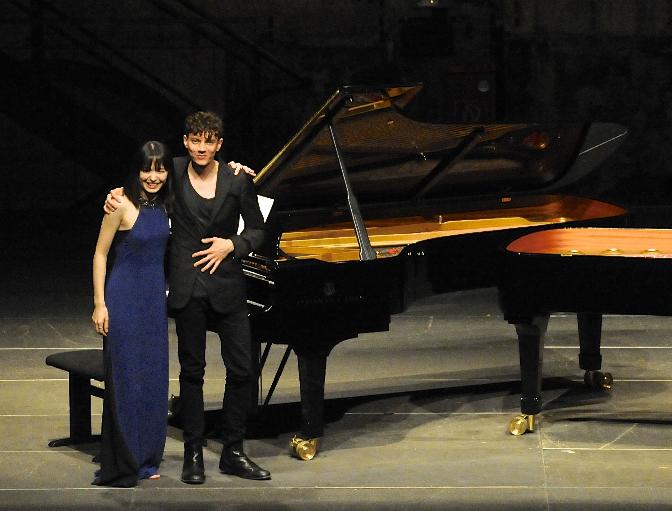 Alice Sara Ott und Francesco Tristano – zwei Pianisten, harmonisch vereint immerhin zum Schlussapplaus. Foto: Mohn/KFR