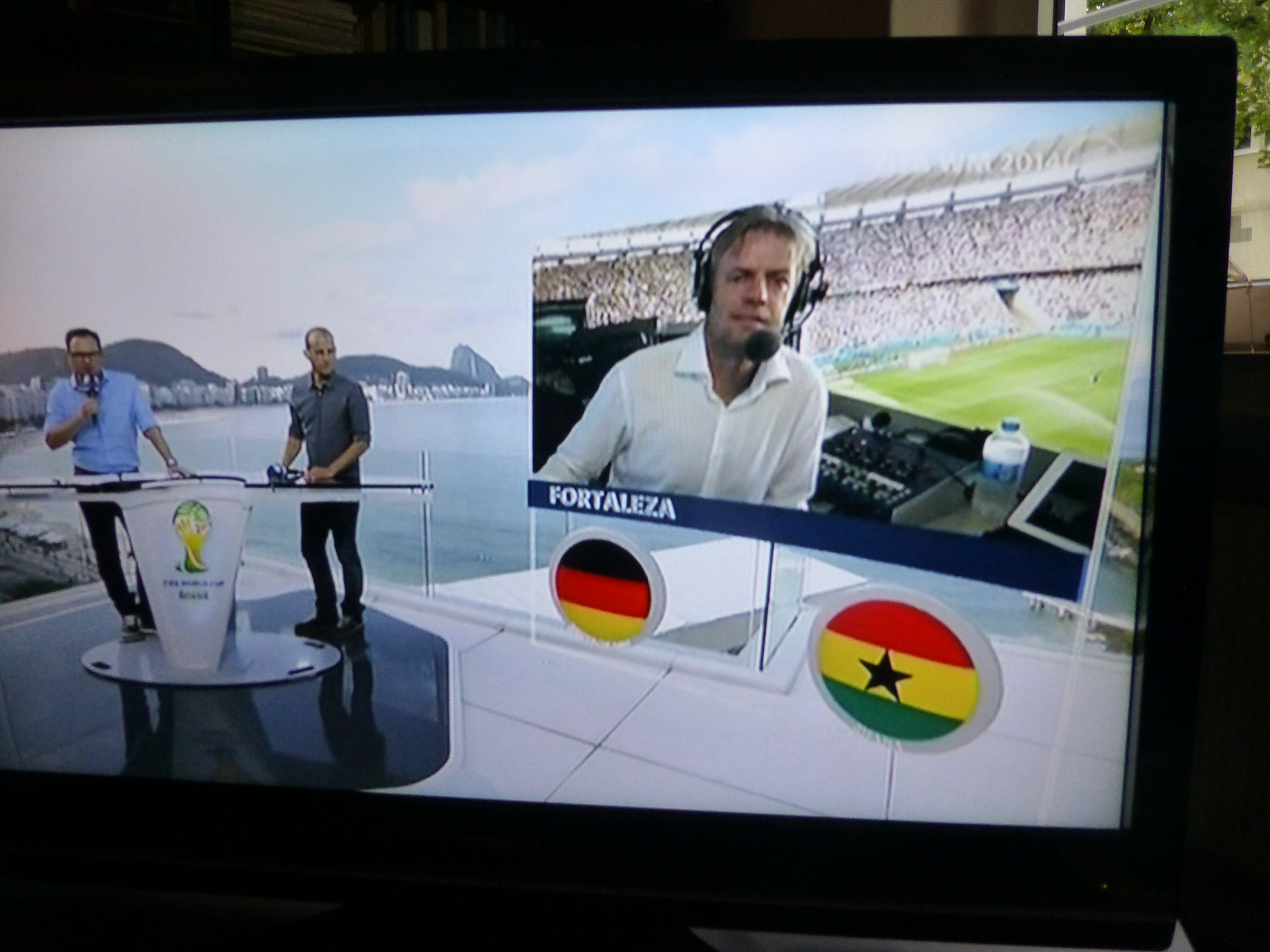 Deutsche TV-Präsenz am Zuckerhut: Matthias Opdenhövel und Mehmet Scholl (hinten links), Kommentator Tom Bartels (eingeblendetes Bild rechts). (Bild: abgeknipst vom ARD-Bildschirm)