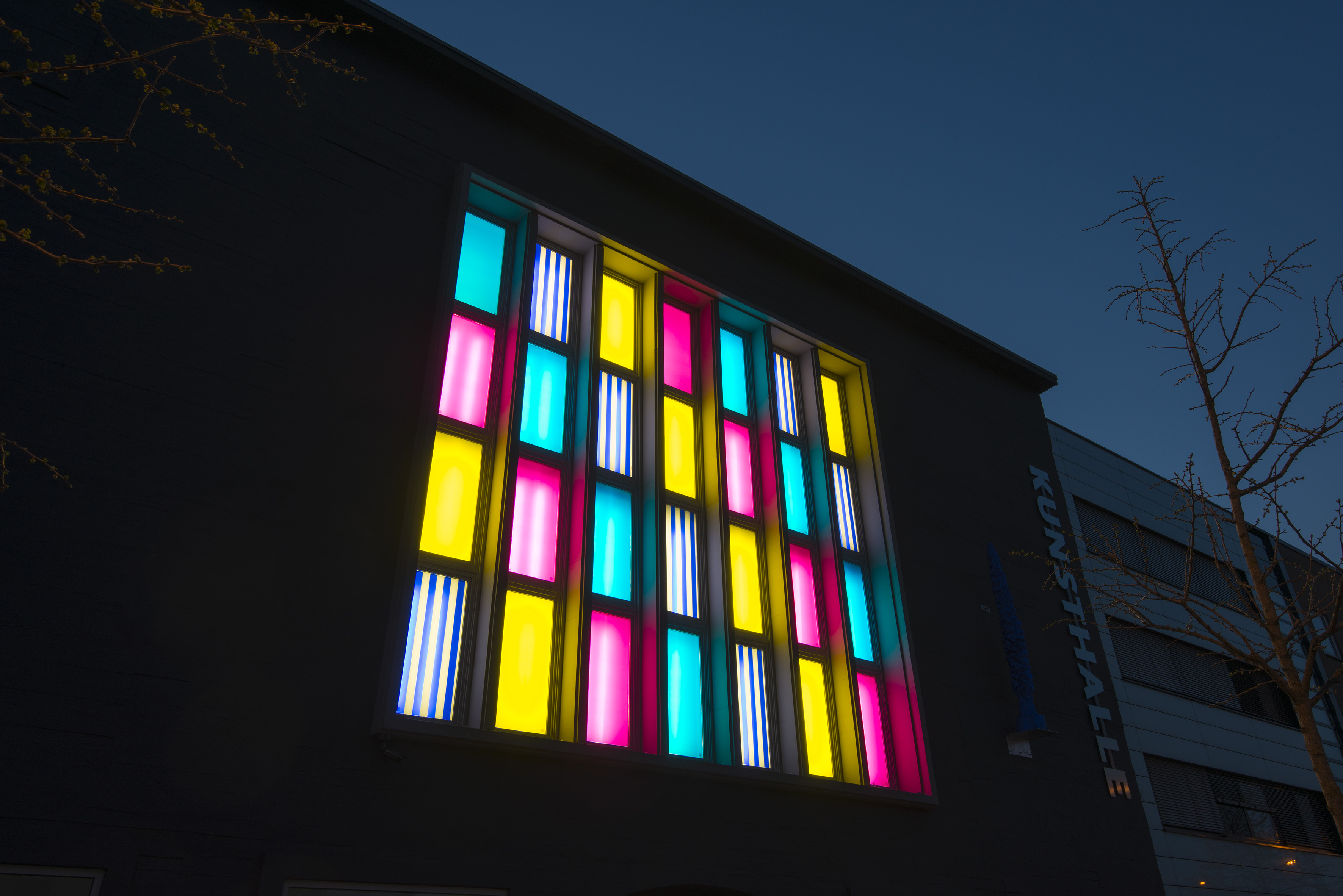 Außenansicht der Kunsthalle nach Daniel Burens farblicher Intervention. (Foto: Kunsthalle Recklinghausen)