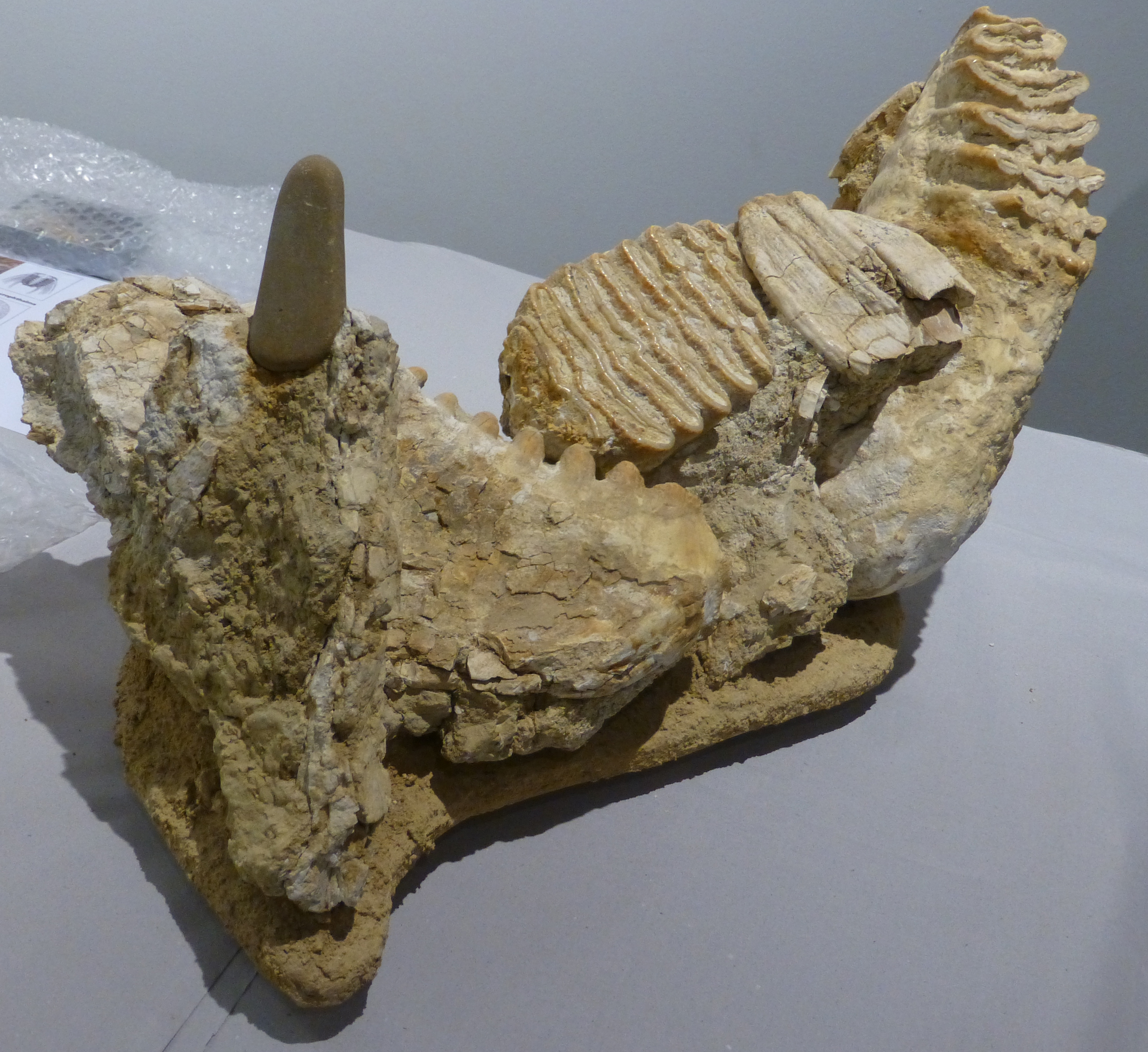 1,8 bis 2,2 Mio. Jahre alt: Block mit drei Zähnen von Südelefanten, gefunden am Haarstrang bei Soest (Foto: Bernd Berke)