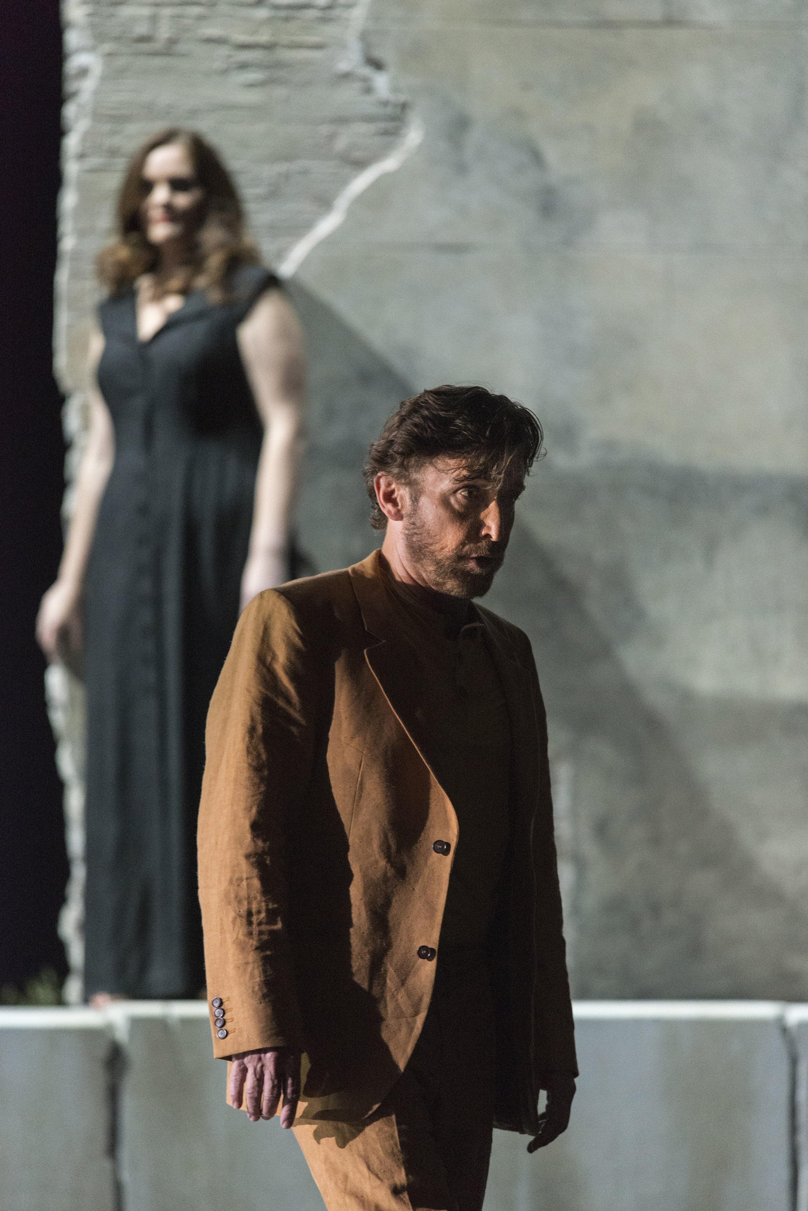 Manolios (Jeffrey Dowd) fürchtet sich vor der Versuchung durch Katerina (Jessica Muirhead. Foto: Matthias Jung, Aalto-Theater)