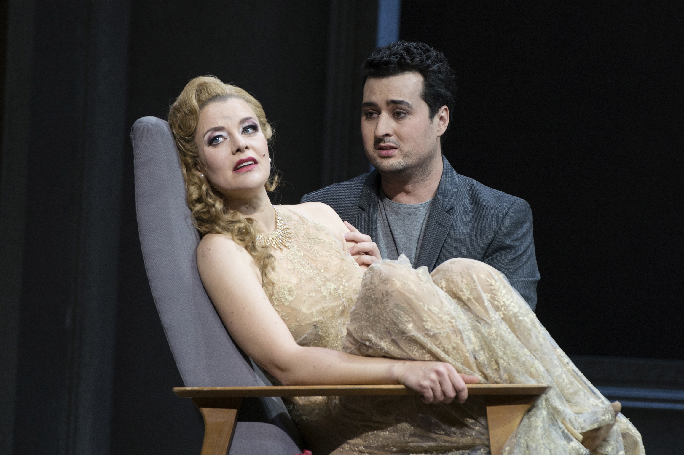 Violetta (Eleonore Marguerre) und Alfredo (Ovidiu Purcel. Foto: Thomas M. Jauk, Stage Picture)