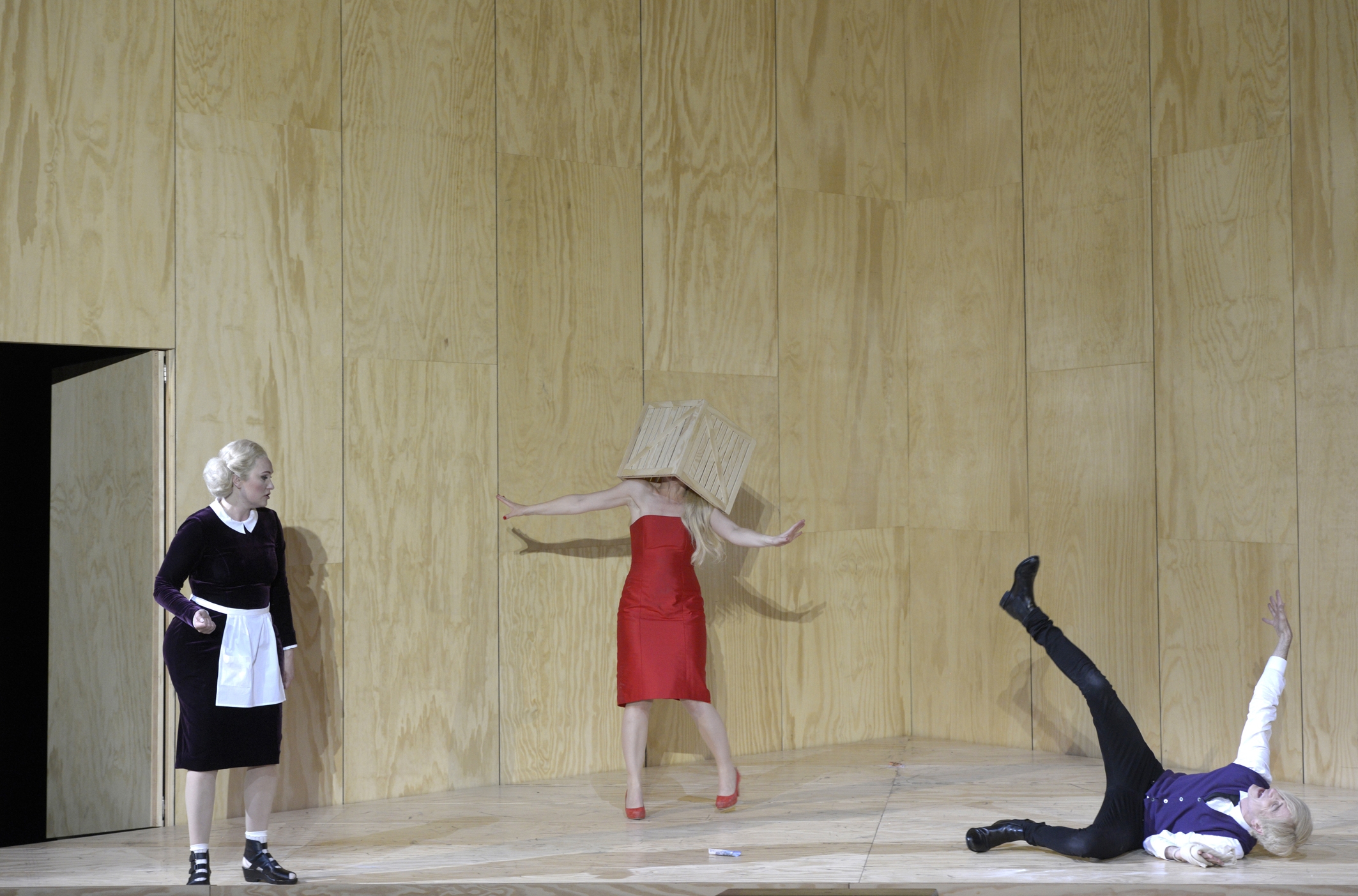 Dienstmagd Berta (An De Ridder), Rosina (Karin Strobos) und Diener Fiorello (Kai Preußker) wissen auch nicht immer, wo es lang geht (Foto: Bettina Stöß/Aalto-Theater)