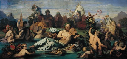 Der „Vater Rhein“ in seinem Bett, umgeben von Städten und Nebenflüssen – so malte es 1848 Moritz von Schwind. (Foto: Raczynski-Stiftung, Poznan)