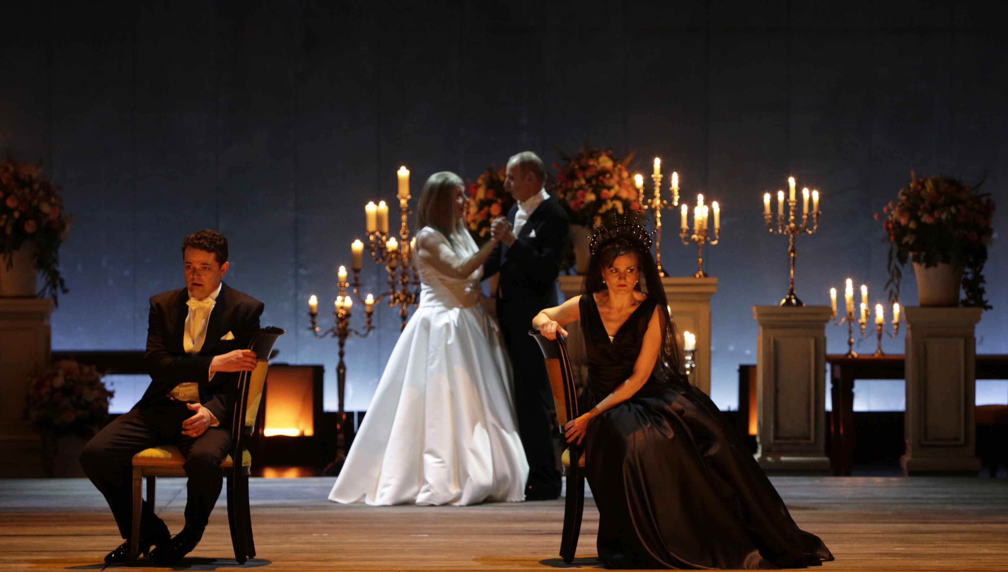 Nacht und Kerzenschein: In Ben Baurs Lesart von „Don Giovanni“ ringen die Figuren um das Leben zu zweit (Foto: Pedro Malinowski/MiR)