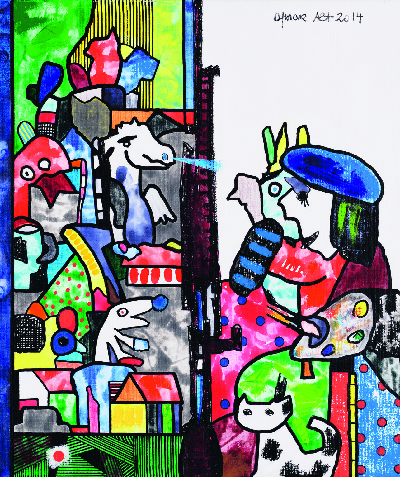 Hommage an Lucas Cranach: Otmar Alts Bild „Der Meister Lucas bei der Arbeit“ (2014), Acryl auf Leinwand. (Otmar Alt / Otmar Alt Stiftung)