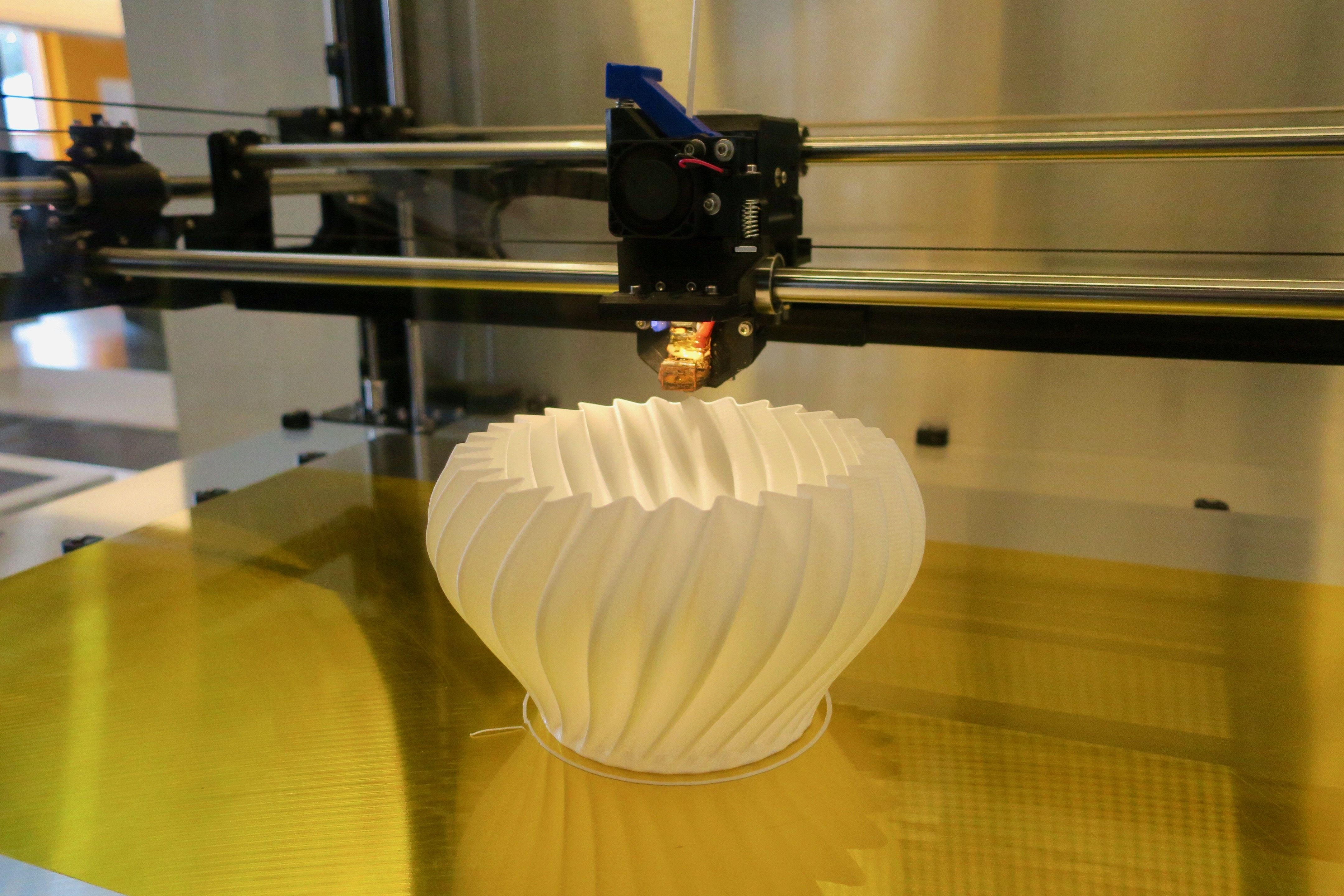 3-D-Drucker bei der Arbeit: Es entsteht eine Vase. (Hersteller Membino GmbH, Elmshorn / Foto: Bernd Berke)