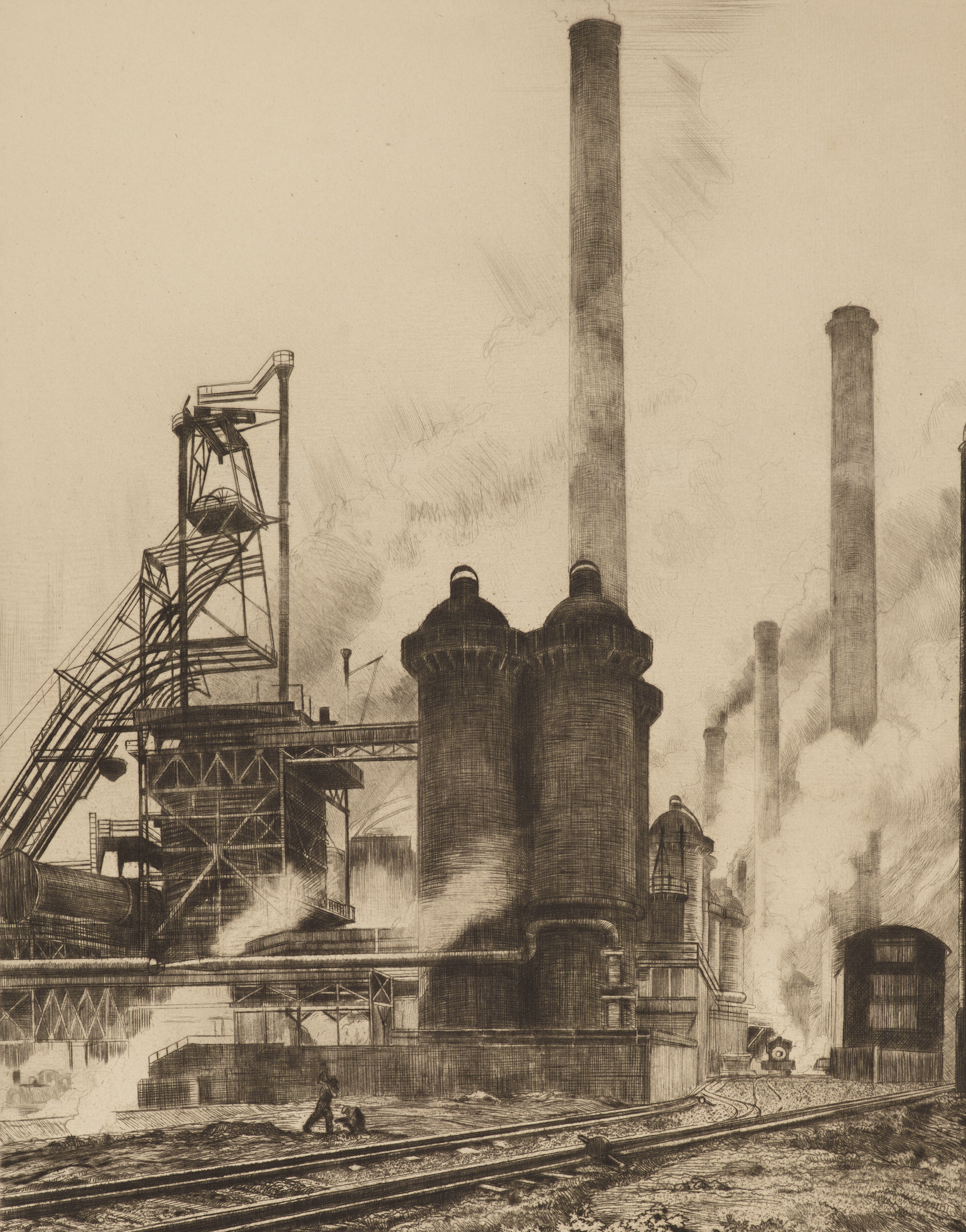 Hermann Kätelhön: „Hochofen“, undatiert Radierung, 33,3 x 26,2 cm (Bild: Museum Folkwang, Essen)