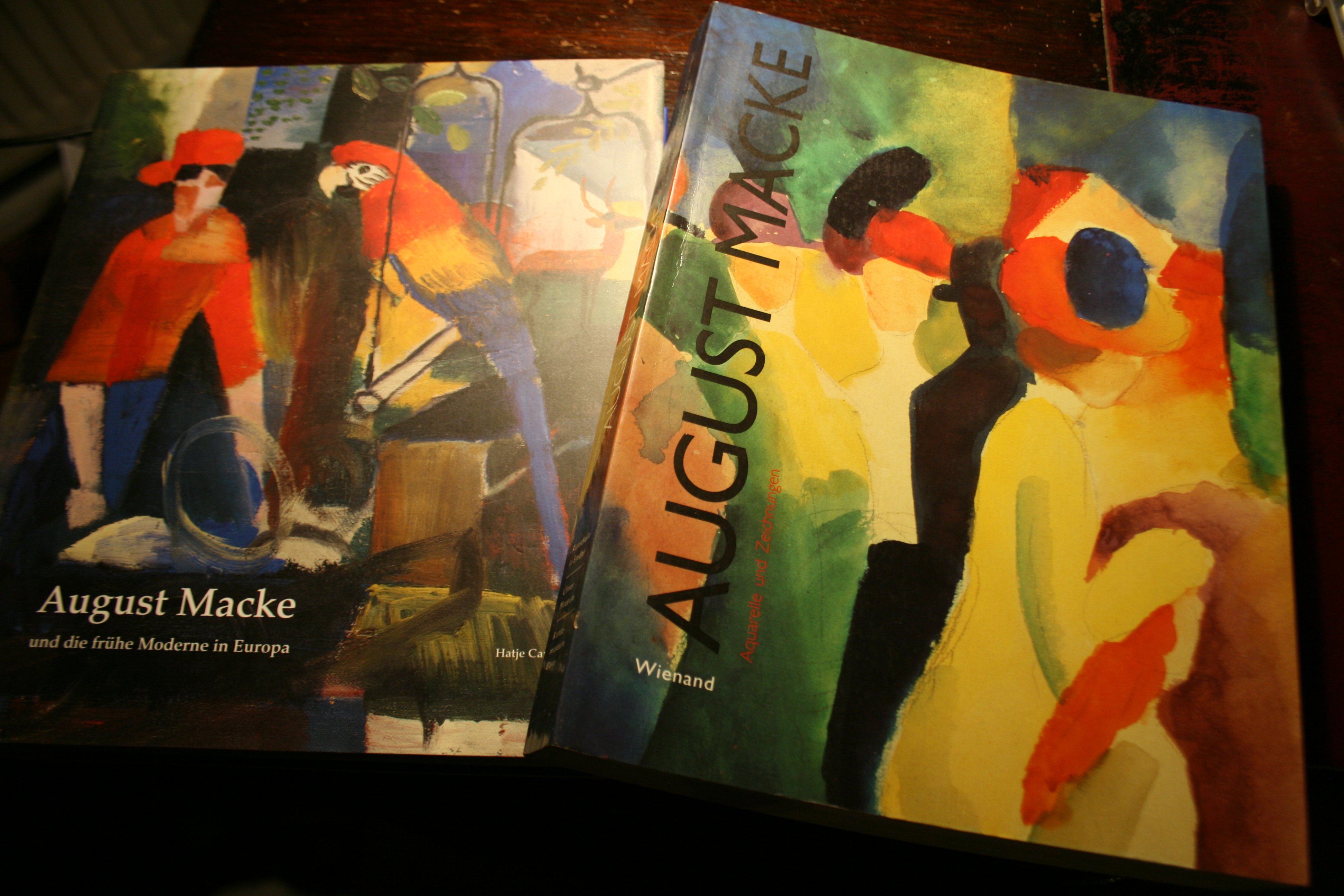 Macke-Kataloge aus den Verlagen Hatje Cantz (erschienen 2001, links) und Wienand (erschienen 1992 zur Ausstellung in Emden, Ulm und Bonn, rechts) (Foto: Bernd Berke)