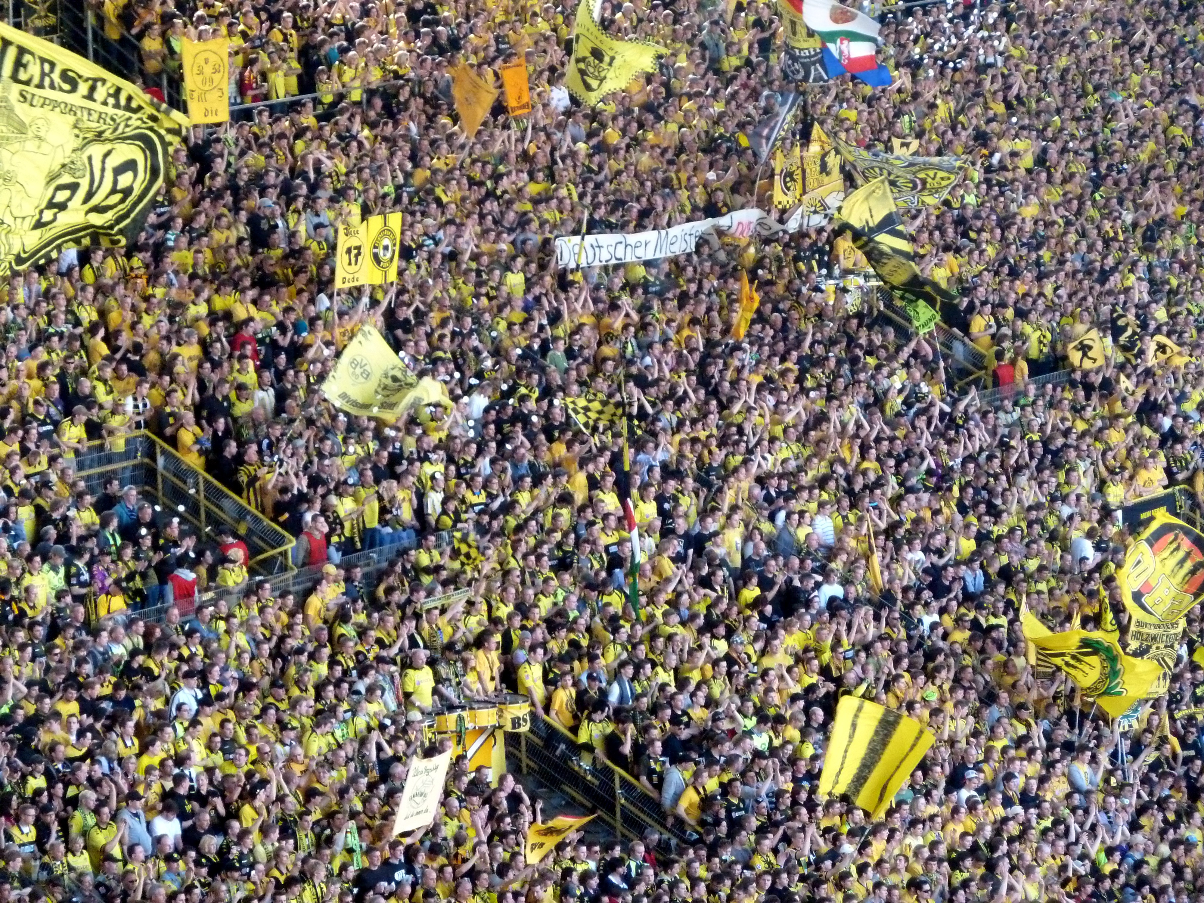 Westfalenstadion Dortmund, Südkurve, beim Spiel BVB – Hannover 96 am 2. April 2011 (Foto: Bernd Berke)