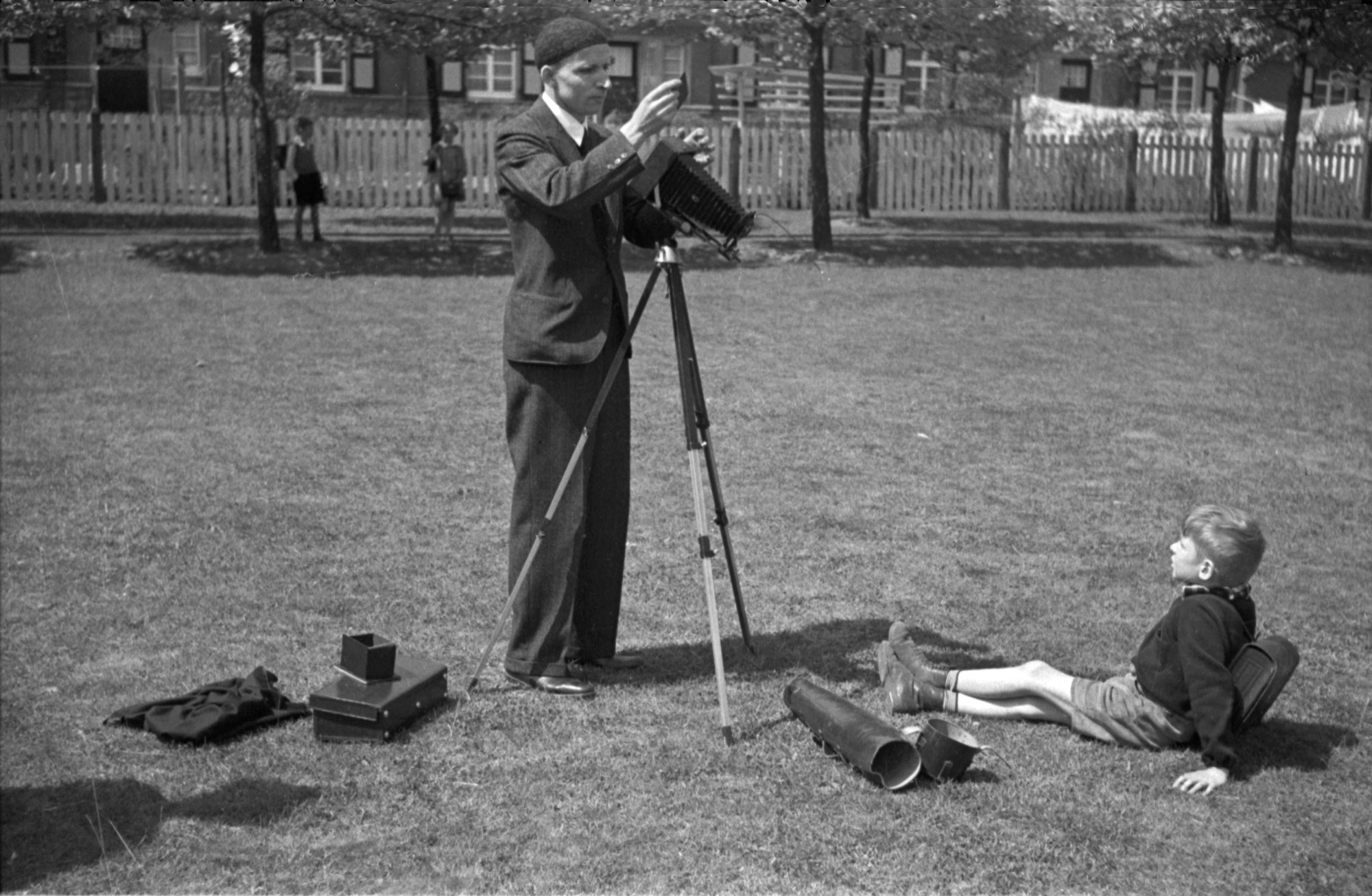 Albert Renger-Patzsch bei der fotografische Arbeit auf der Margarethenhöhe in Essen, um 1933 (© Willy van Heekern / Fotoarchiv Ruhr Museum)