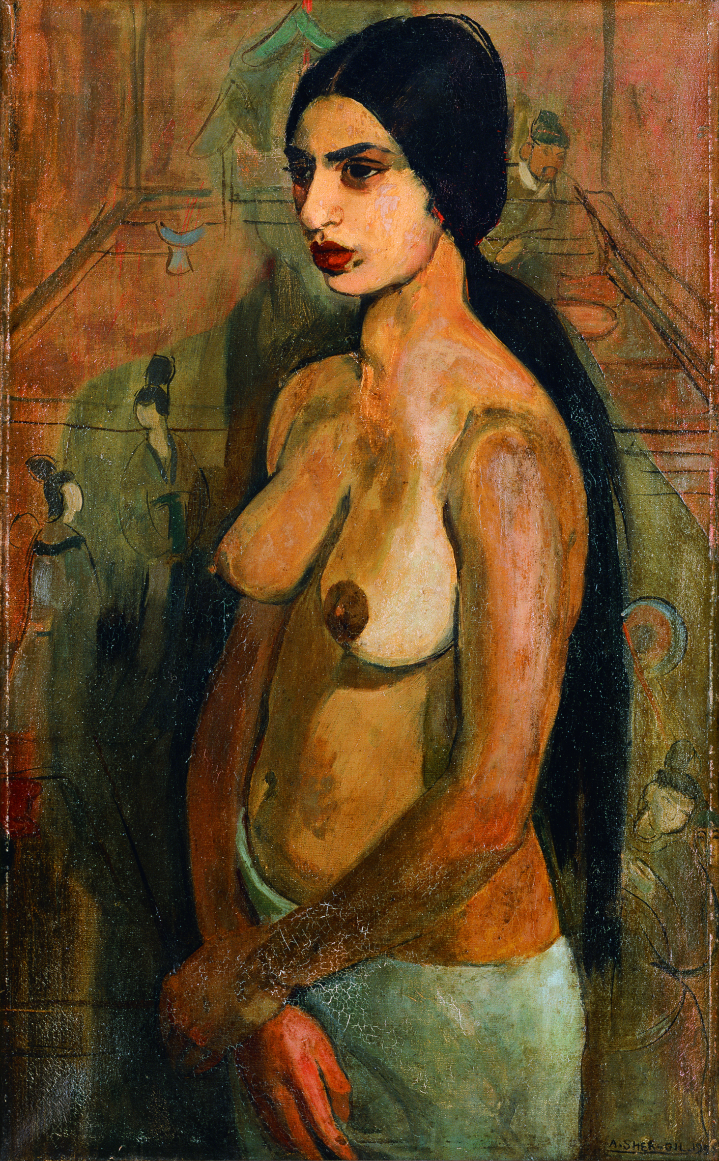 Anlehnung an Gauguin: Amrita Sher-Gil „Self-Portrait as a Tahitian“, 1934, Öl auf Leinwand (Collection of Navina and Vivan Sundaram – Foto: © Kunstsammlung NRW)