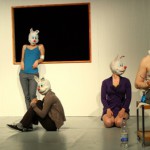 Das Stadttheater ist nicht die einzige Anlaufstelle für „den Theaterabend“. Die BürgerInnen wuseln umher und folgen immer mehr den Verlockungen der Löcher – dem Nichts der übermäßigen Farbenpracht, der Vielfalt der Bildschirme und Displays in allen Größen.