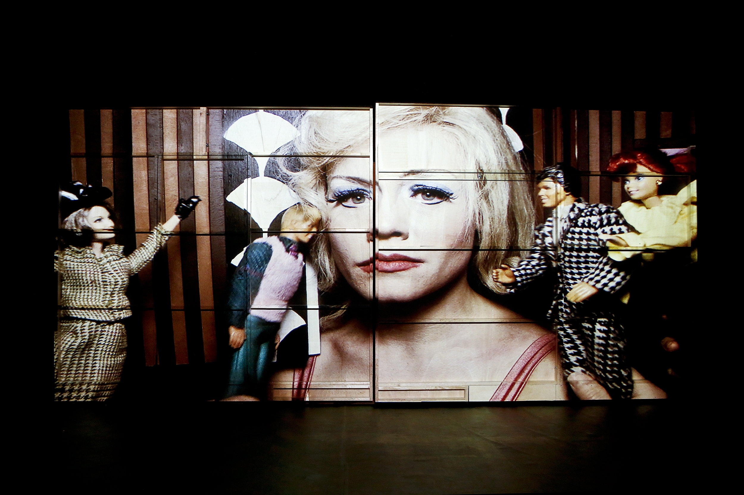 Hedda Gabler (Bettina Lieder) in Video-Projektion auf Kulisse (Foto: Birgit Hupfeld/Theater Dortmund)