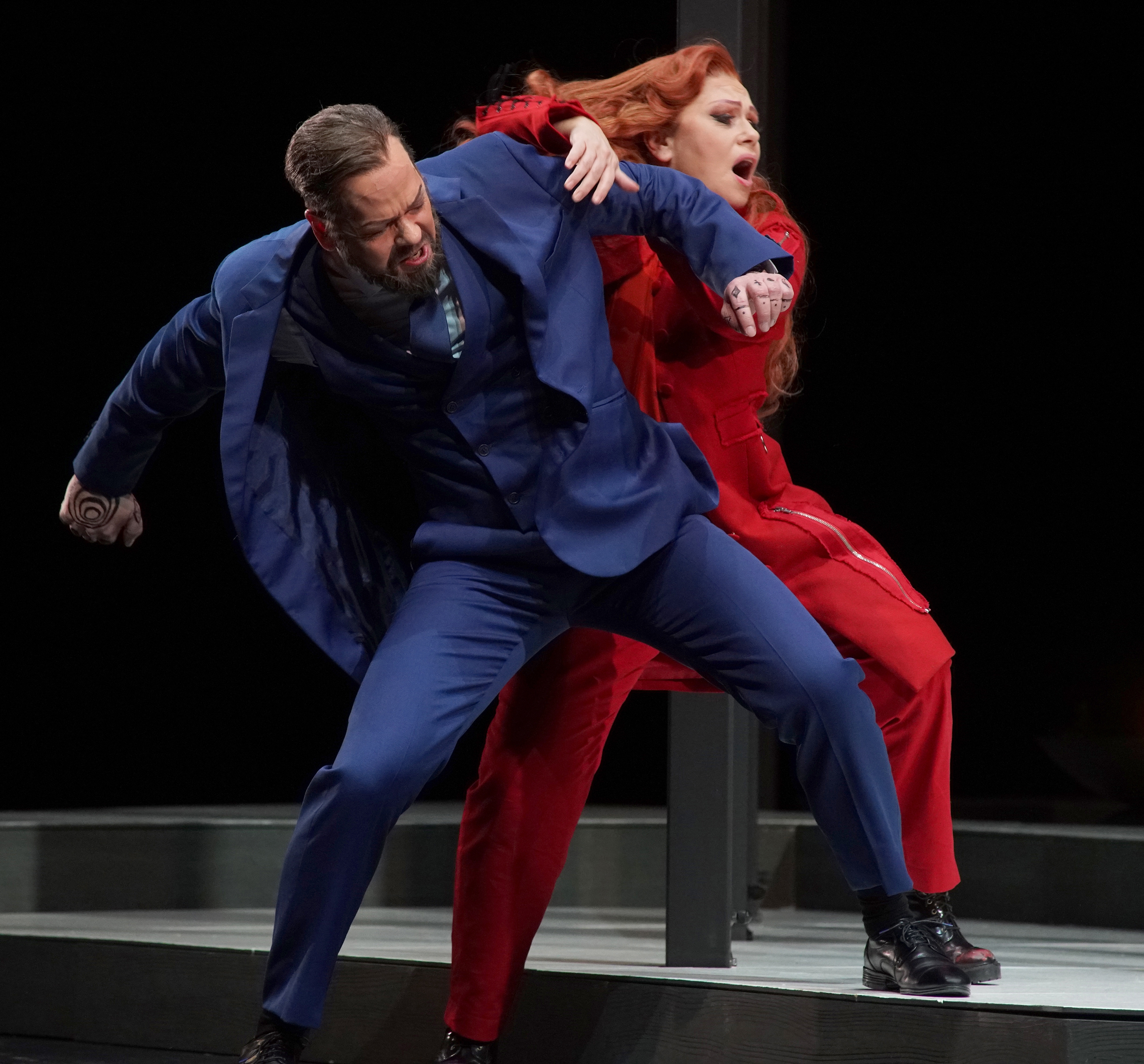 Kampf um die Liebe, Kampf um die Kinder: Medea (Claudia Barainsky) und Jason (Sebastian Noack. Foto: Karl Forster)