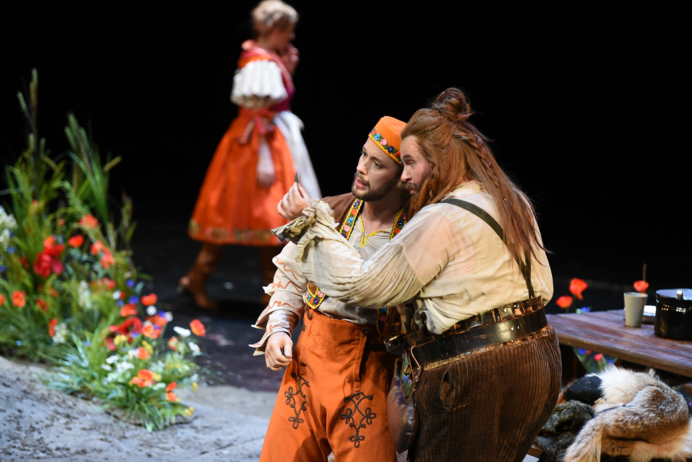 Der Räuber Babinsky (Uwe Sickert, r.) überredet Schwanda, seine Frau Dorota zu verlassen und als Künstler Karriere zu machen. (Foto. Monika Forster)