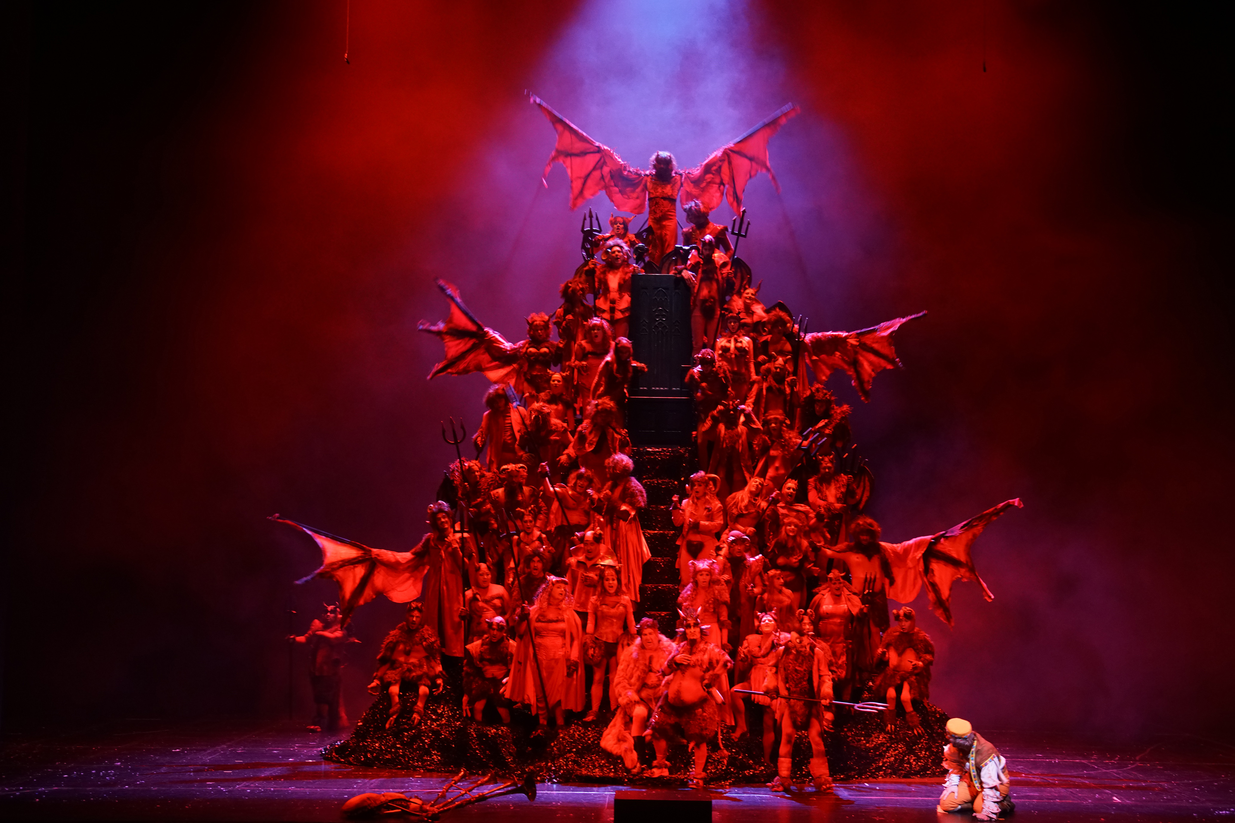 Platzmangel in der Hölle: Schwanda (Piotr Prochera, vorne rechts) wird für eine freche Lüge bestraft (Foto: Monika Forster)