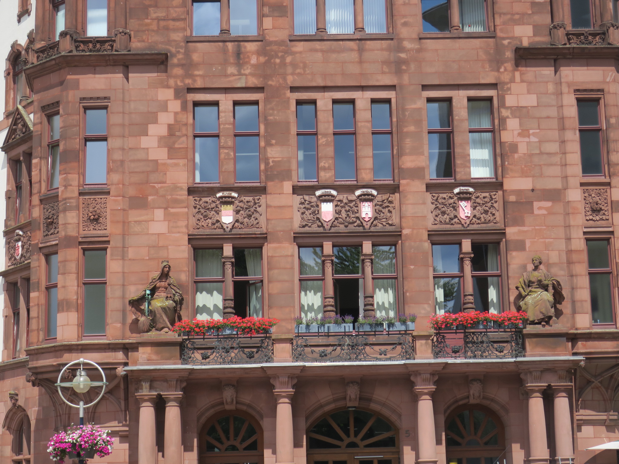 Teilansicht der Fassade des Alten Stdthauses – mit allegorischen Figuren zur Hanse (links) und zur Industrialisierung (rechts). (Foto: Bernd Berke)